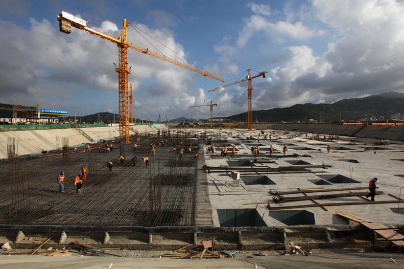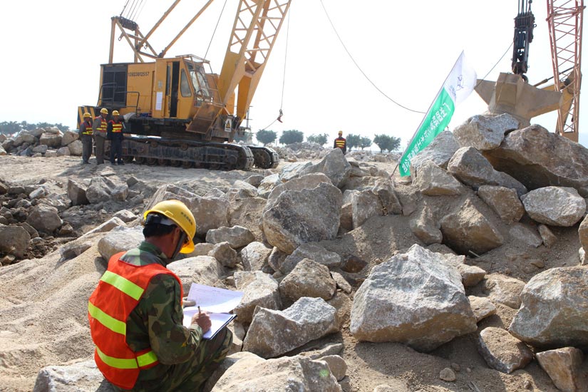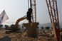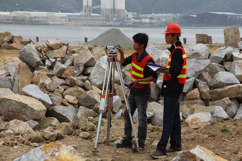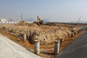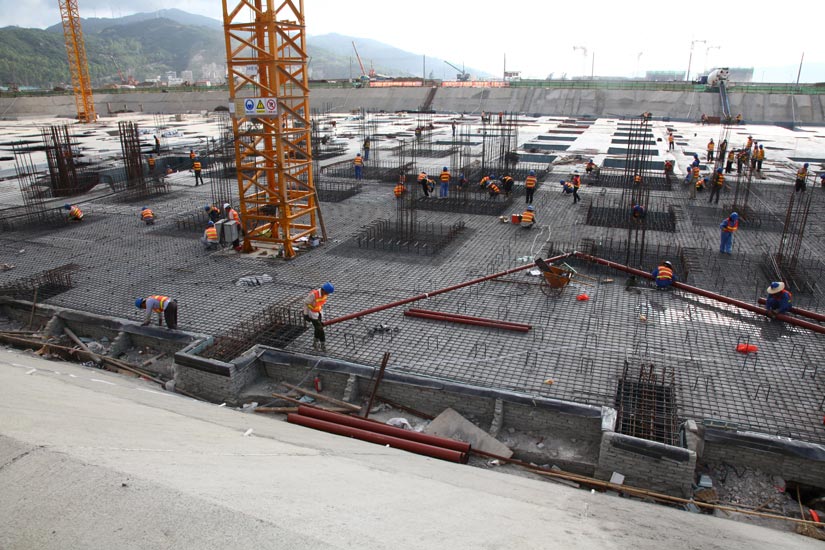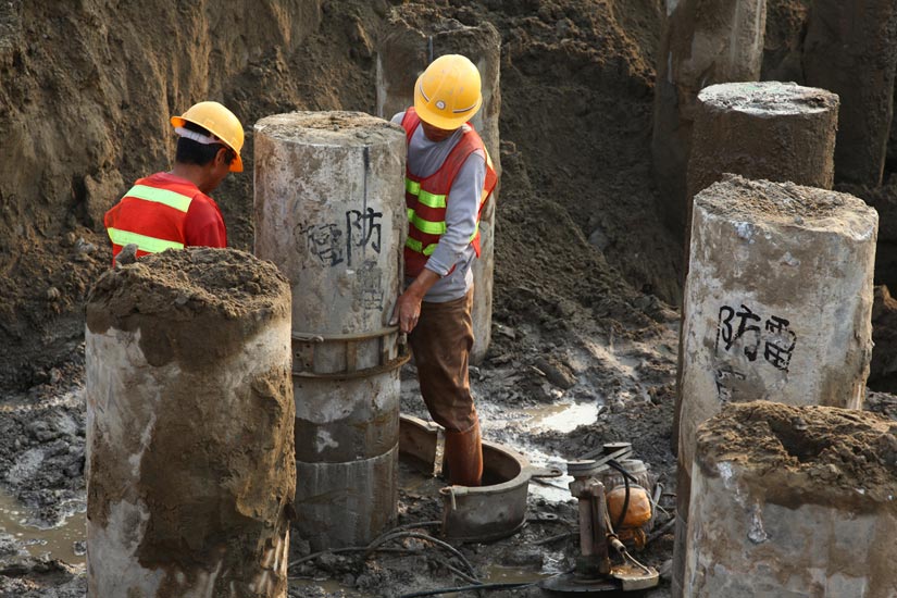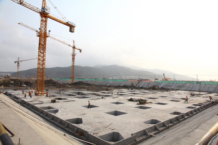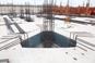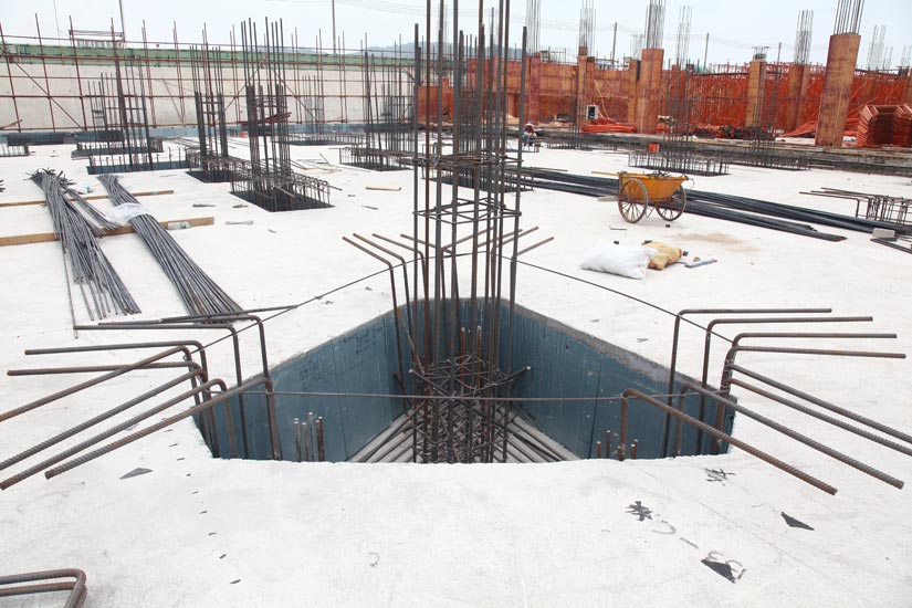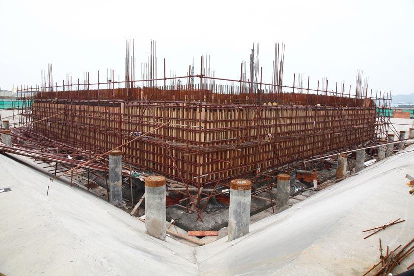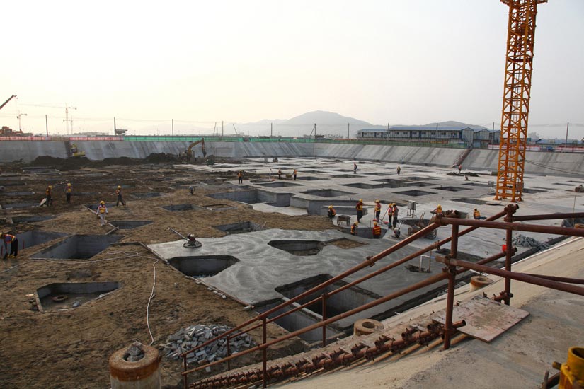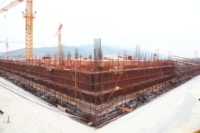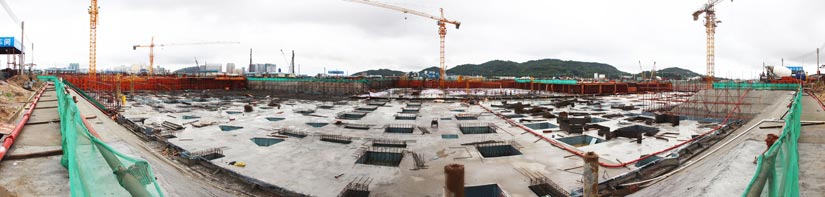 標誌性建築(中央教學樓和圖書館)正進行地下室底板的施工