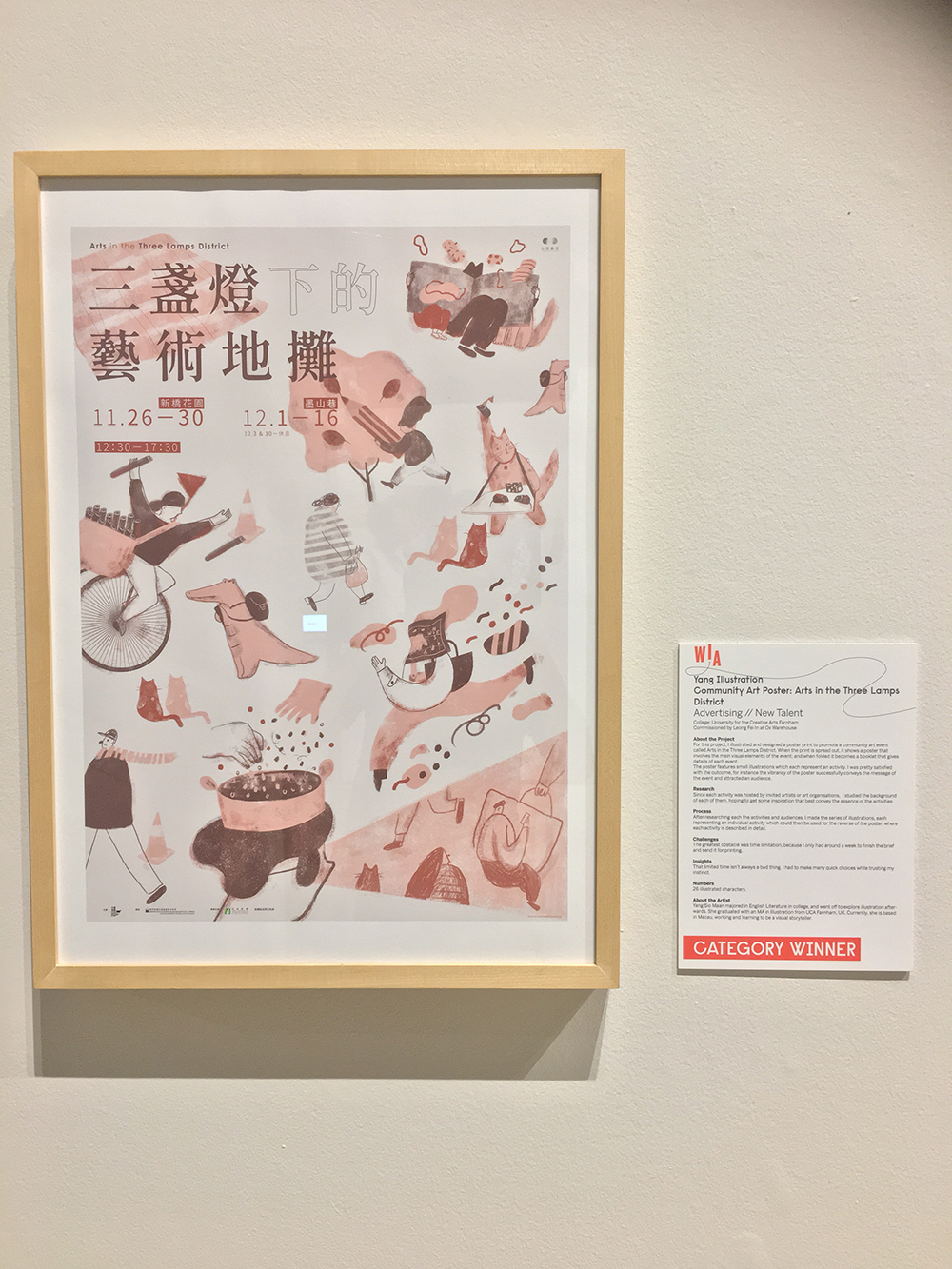 Organised by the Association of Illustration in the UK, this year’s World Illustration Awards received 3,600 entries from 68 countries and regions. Only 200 were selected, and these include Yang’s two entries. One of her entries, titled ‘Arts in the Three Lamps District’, became one of 16 Category Winners at the event. It was also the only entry from Macao to win an award at the event. Both illustrations were exhibited in the Somerset House in downtown London.