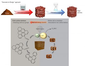 The application of sludge biochar is a trending topic in recent years and the production of biochar can contribute to the process of carbon capture and storage around the world. Biochar not only is used as soil amendment, catalyst, or adsorbent, but also can be applied in the preparation of electrochemical capacitors when modified because of its large surface area. Titled ‘“A“Seawater-in-Sludge”approach for capacitive biochar production via the alkaline and alkaline earth metals activation”, the UM team’s paper proposes modifying sewage sludge pyrolysis by using a large amount of alkali metals and alkaline earth metals found in seawater as activators.