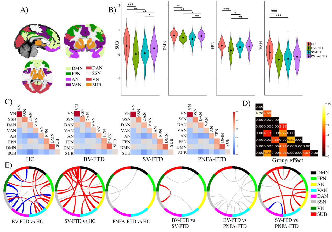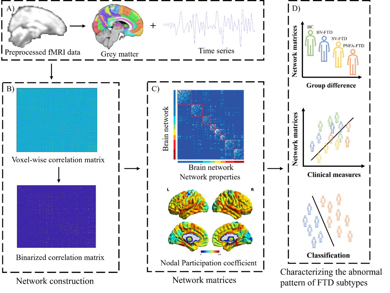 FTD is one of the most common forms of early-onset dementia and primarily comprises three clinical subtypes—behavioural variant FTD (bvFTD), semantic variant primary progressive aphasia (svPPA), and nonfluent variant primary progressive aphasia (nfvPPA). While each subtype exhibits distinct behavioural, language, and cognitive symptoms, the underlying brain network disruptions remain poorly understood. In this study, the research team analysed resting-state functional MRI data from over 190 participants, including healthy controls and patients with the three major FTD subtypes, to construct high-resolution voxel-wise connectome framework and investigate modular brain organisation across the different subtypes. The team then used machine learning models to classify the FTD subtypes based on these connectome-derived features.