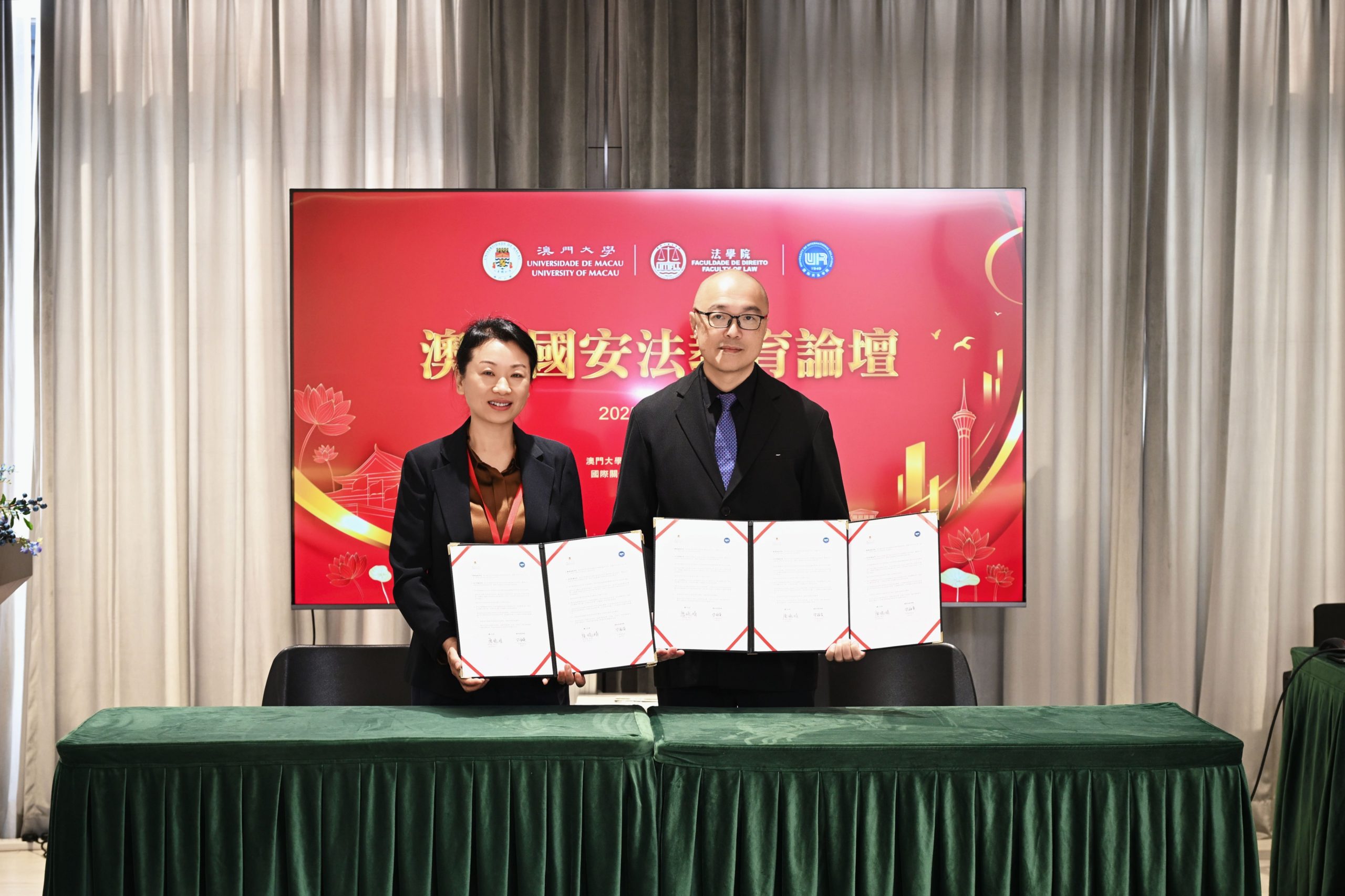 To mark the 10th anniversary of the promulgation and implementation of the National Security Law of the People’s Republic of China, the Centre for Constitutional Law and Basic Law Studies of the Faculty of Law at the University of Macau and the Research Base for National Security and Rule of Law at the University of International Relations jointly held a forum on national security education in Macao on 6 December. During the event, the two institutions also signed a cooperation agreement to further strengthen national security education in the Macao SAR.