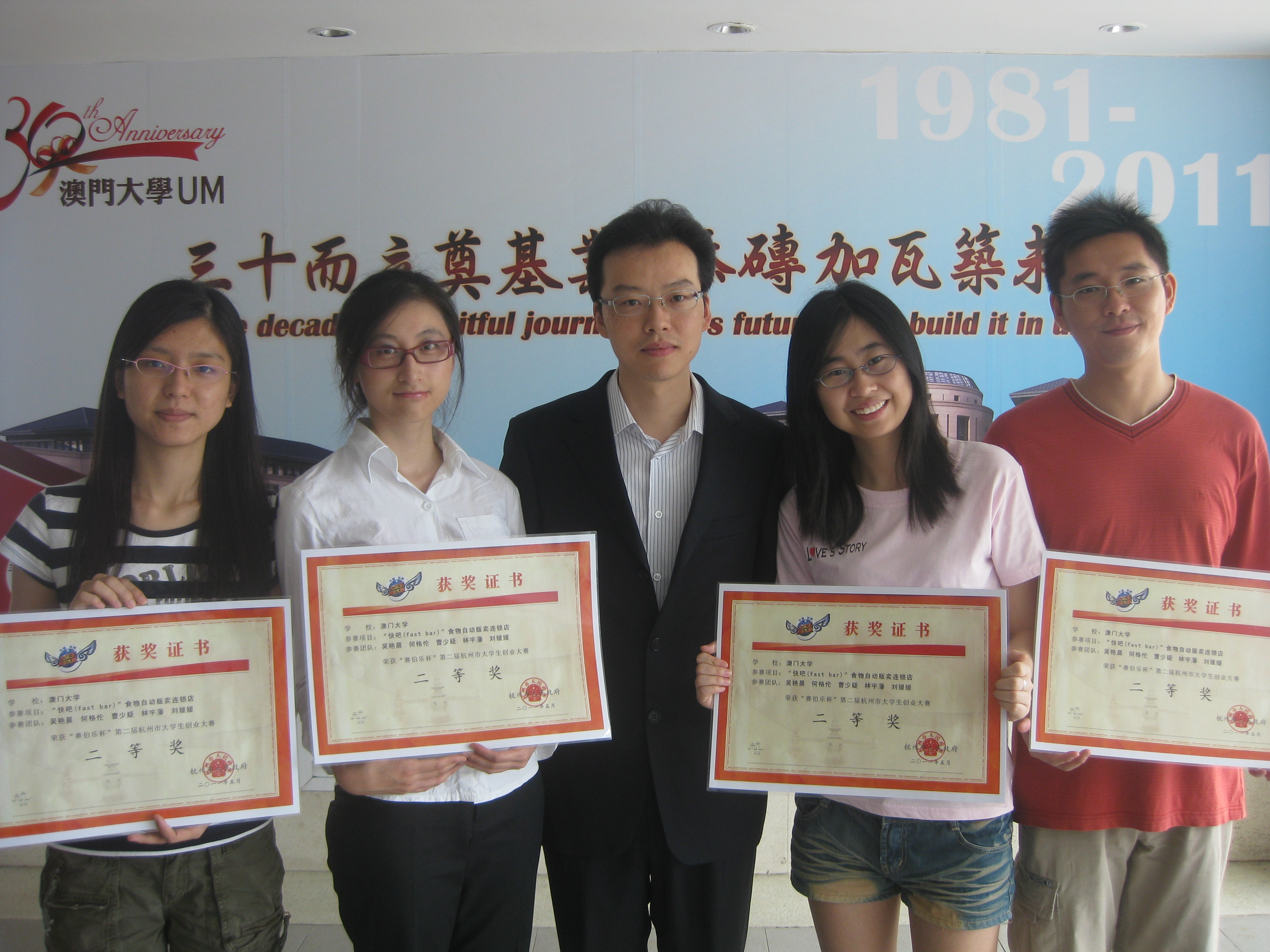 UM team wins the second best prize at the “Sai Bo Le” Cup Entrepreneurial Competition for University Students 2011 |