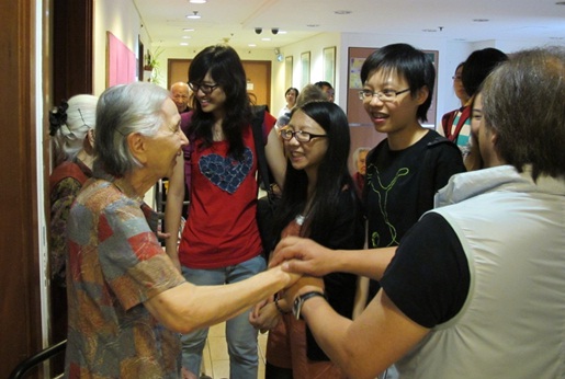 | The residents of the elderly home look very happy about the students’ visit |