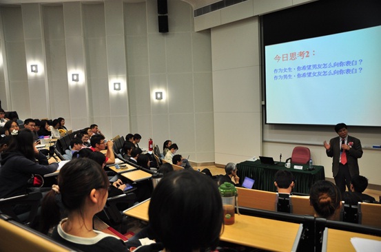 On 17 November 2011, the University of Macau (UM) Postgraduate Association held the 24th Lecture Hall of Times “Romantic Love Is a School: On Romantic Love and Individual Growth” at the Ho Yin Convention Centre. Speaker Dr Yue Xiaodong is a Harvard PhD graduate in psychology, an associate professor of the Department of Applied Social Studies at the City University of Hong Kong, and the first chair of the Division of Counselling Psychology of the Hong Kong Psychological Society (Limited). At the lecture, Dr. Yue shared his understanding of romantic love as well as the relationship between romantic love and individual growth.