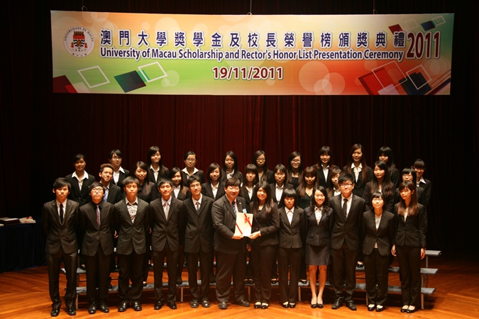 The University of Macau (UM) held the Scholarship and Rector's Honor List Presentation Ceremony 2012 on 19 Nov 2011. More than five hundred outstanding students received prizes and scholarships. This year, UM received two hundred and eighty-three scholarships and academic prizes, in the amount of MOP 4.57 million, from forty-two organizations and individuals.