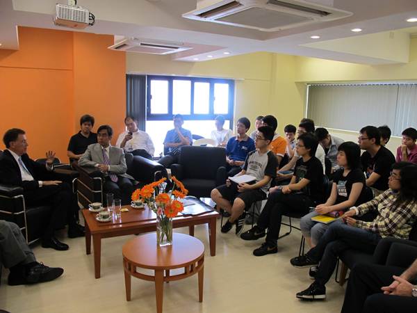 Prof. Ayala, recipient of the 2001 National Medal of Science (U.S.), world-renowned biologist, and author of several famous books discussing the relationship between science and religion, joined the EAC Master's Tea on 6 November 2011 as the guest of honor. Prof. Ayala first shared his opinions on science and religion, and then answered questions from the students. Students were all so eager to ask questions that EAC Head Prof. Iu Vai Pan had to prolong the discussion session. The atmosphere throughout the discussion was very happy. After the discussion, Prof. Ayala and the participating students enjoyed a lunch together.