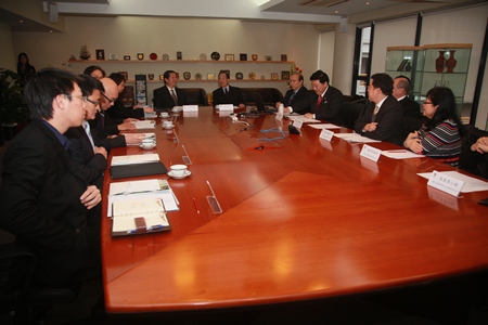 Mr. Cheong and his colleagues, including advisors Ms. Iao Man Leng, Mr. Wai Cheng Iong, and Mr. Ung Chi Keong, were warmly received by UM’s University Council Chair Dr. Tse Chi Wai, UM Rector Wei Zhao, and Vice Rectors Prof. Simon Ho, Prof. Rui Martins and Dr. Alex Lai. During the meeting, Mr. Cheong highly recognized UM’s impressive achievements in recent years, which he attributed to government support and the joint efforts of all UM members. He made special mention of the new “4-in-1” pedagogical model, the trial implementation of the residential colleges, the approval of the two state key laboratories, and the founding of Macao’s first Honours College, saying that these strategies are not only pioneering endeavours in Macao, but also have taken UM one more step closer towards realizing whole-person education. He remarked that developing UM into a world-class institution is no mean feat that would probably take ten years, twenty years or even longer. He also expressed admiration for the solidarity among all UM members in their preparation for future relocation to the new campus, which is expected to be completed within a short time frame of three years . He encouraged all UM members to continue to work hard and make a united effort to help UM scale new heights in the future.
