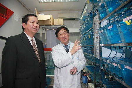 Mr. Cheong paid special visits to the State Key Laboratory of Analog and Mixed-Signal VLSI, the State Key Laboratory for Quality Research in Chinese Medicine, the East Asia College and the University Library, during which he was updated on UM’s latest developments in cutting-edge research and the effectiveness of the implementation of whole-person education. Later in the evening, he attended UM’s Chinese New Year Gathering for Staff 2012 and proposed a toast to over six hundred people. In his speech at the gathering, Mr. Cheong said that the Macao SAR government has always provided full policy- and resource-wise support for higher education development in Macao, and at the moment the UM Charter Revision Task Force is revising UM’s Charter, in order to better support the university’s future development upon relocation to the new campus and create more favorable conditions for the university to realize the goal of becoming a world-class institution.