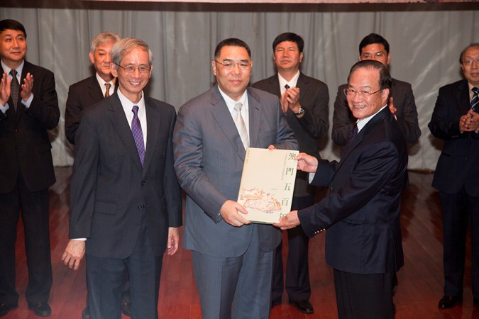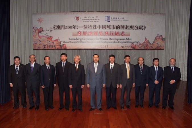 Today the University of Macau (UM) and Hong Kong Baptist University (HKBU) co-organized a book launching ceremony for Macau Through 500 Years: Emergence and Development of an Untypical Chinese City, a collection of the most representative Chinese and foreign historical maps in East Asia and Macao, at UM’s University Library. The ceremony was attended by Macao SAR Chief Executive Chui Sai On, Legislative Assembly President Lau Cheok Va and Secretary for Social Affairs and Culture Cheong U, among others.