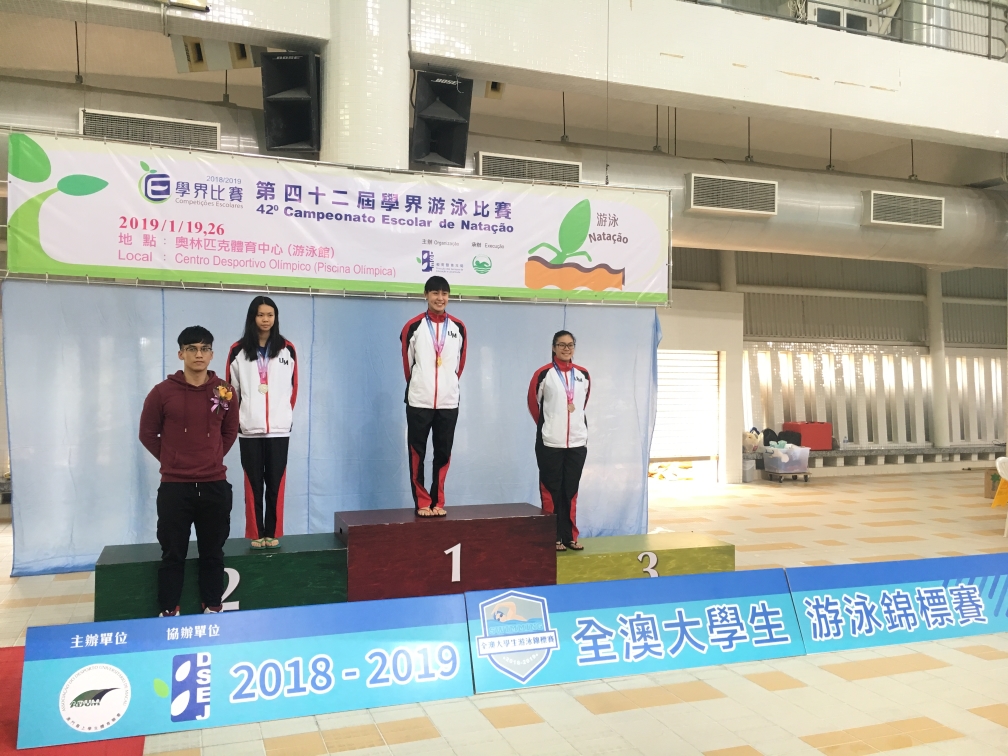 The University of Macau (UM) Swimming Team recently swept all the championships of a local inter-varsity swimming competition. The team won a total of 14 gold medals, 14 silver medals, and nine bronze medals in 12 individual events and two relay events. The team also broke records in the men’s 4×50 metre freestyle relay category and the mixed 4×50 metre medley relay category. This year’s competition attracted students from UM, Macao Polytechnic Institute, and the Kiang Wu Nursing College of Macau.