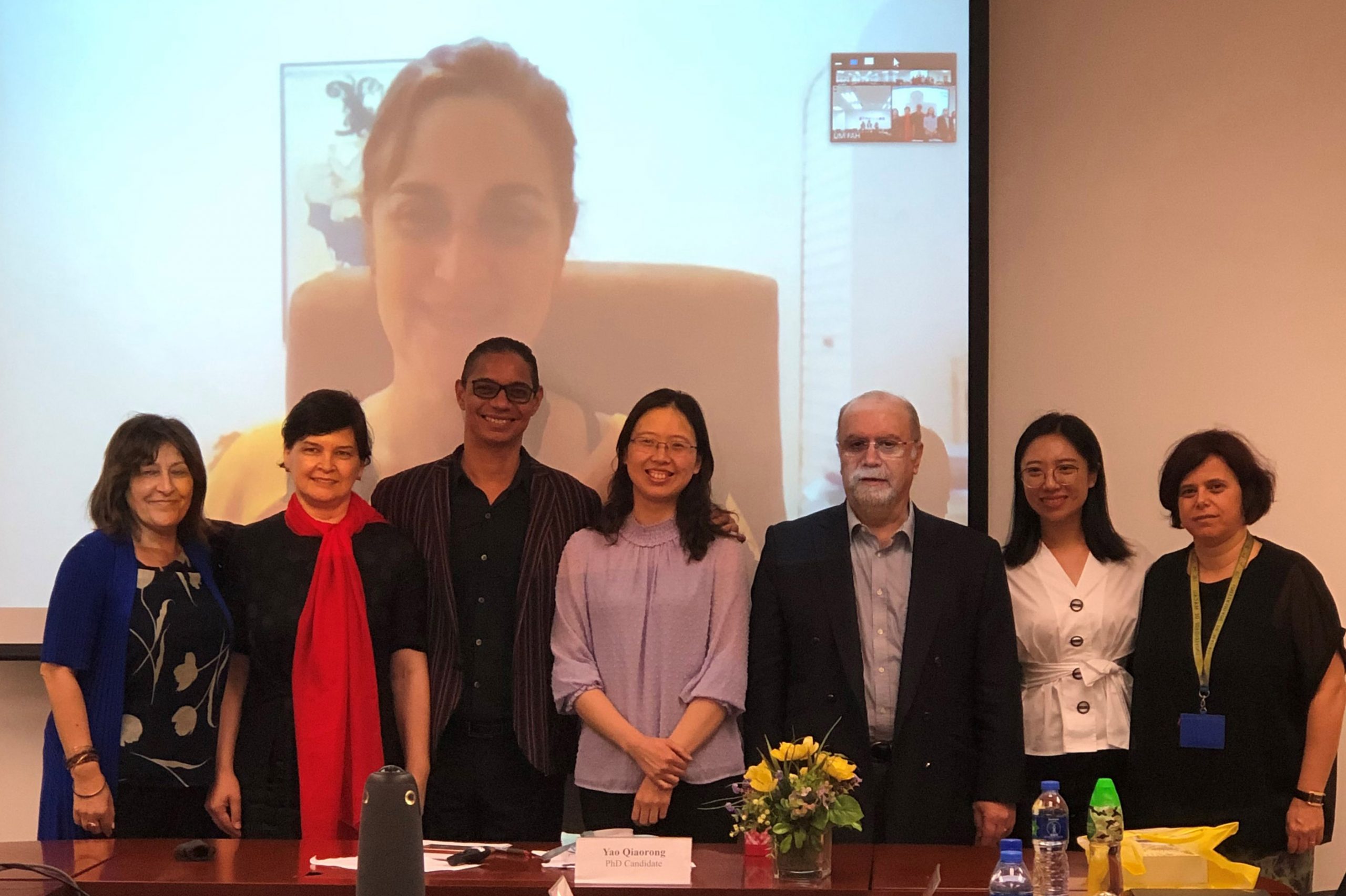 Yan Qiaorong, a PhD student in the Department of Portuguese, Faculty of Arts and Humanities, University of Macau (UM), recently completed the oral defense for her thesis titled ‘Repair as a Cooperative Strategy in Classroom Interaction’. The thesis discusses the stereotype of Chinese students as being passive learners in a Portuguese learning environment and analyses teacher-student interactions in class at universities, with the aim of enhancing learning outcomes. The thesis offers new insights for Portuguese teaching and learning.