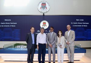 Danilo Afonso Henriques, deputy secretary-general of the Permanent Secretariat of the Forum for Economic and Trade Cooperation between China and Portuguese-speaking Countries (Macao), visited the University of Macau (UM), and was warmly received by Rui Martins, vice rector of UM, and Hu Weixing, dean of the Faculty of Social Sciences (FSS). During the meeting, the two parties exchanged views on strengthening economic and trade relations between China and Portuguese-speaking countries, and explored potential areas of cooperation.
