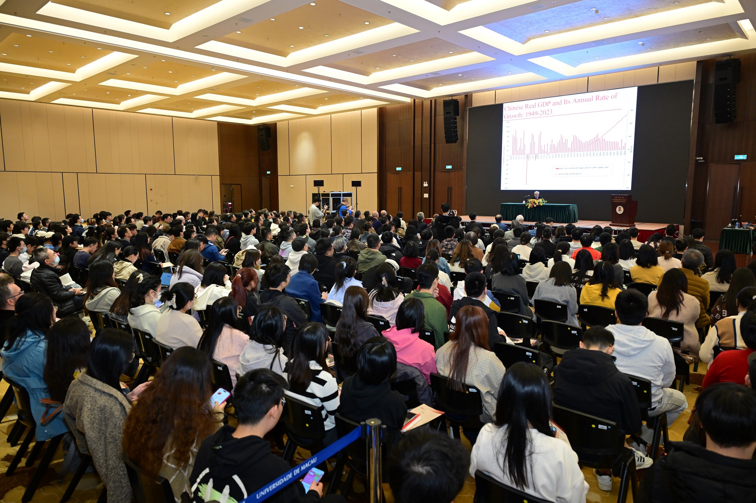 The University of Macau (UM) held a Doctor honoris causa Lecture titled ‘China in the Global Economy’ today (16 January). Lawrence Juen-yee Lau, recipient of the Doctor of Education honoris causa degree from UM and former vice-chancellor of the Chinese University of Hong Kong (CUHK), was the speaker. The talk was well attended by scholars, UM faculty and students, people from various sectors of the community, and the public.