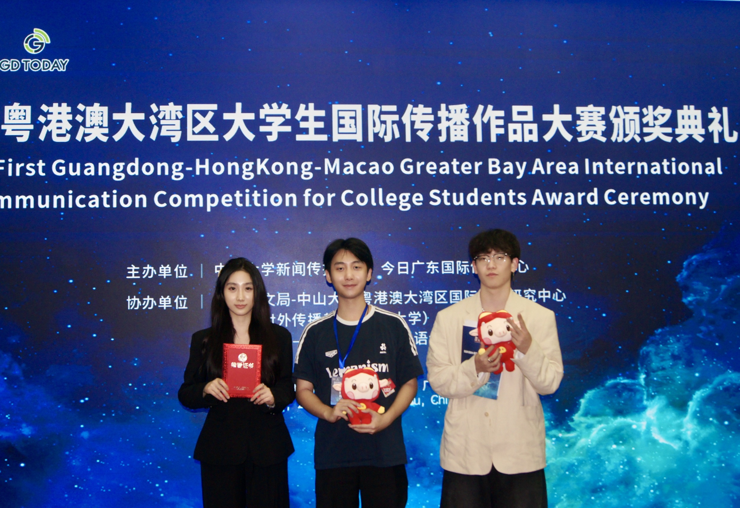 The awards ceremony was held at Sun Yat-sen University on 17 May. A team of communication students from the Faculty of Social Sciences (FSS)—Chen Ziqi, Sui Xinyi, and Wang Yixin—won a third prize in the ‘written reports’ category for their entry, ‘Fusion Strings: Macao’s Traditional Chinese Music Weaves East-West Narratives’. Their work showcased Macao’s cultural identity through Chinese music. Another team—comprising Sui Xinyi and Wang Yanbo, also communication students from FSS; Tong Hou Un, a business intelligence and data analytics student from the Faculty of Business Administration; and Liu Zixiao, a mathematics student from the Faculty of Science and Technology—won a third prize in the ‘audio and video works’ category for their entry ‘Looking at Macao with the Third Eye’. Their work highlighted Macao’s social stability and prosperity under the ‘one country, two systems’ policy through the lens of a foreigner. Che Hio Ieong, senior instructor in FSS, and Chan Io Ieong, resident fellow of Ma Man Kei and Lo Pak Sam College, were the supervisors of the two teams respectively.