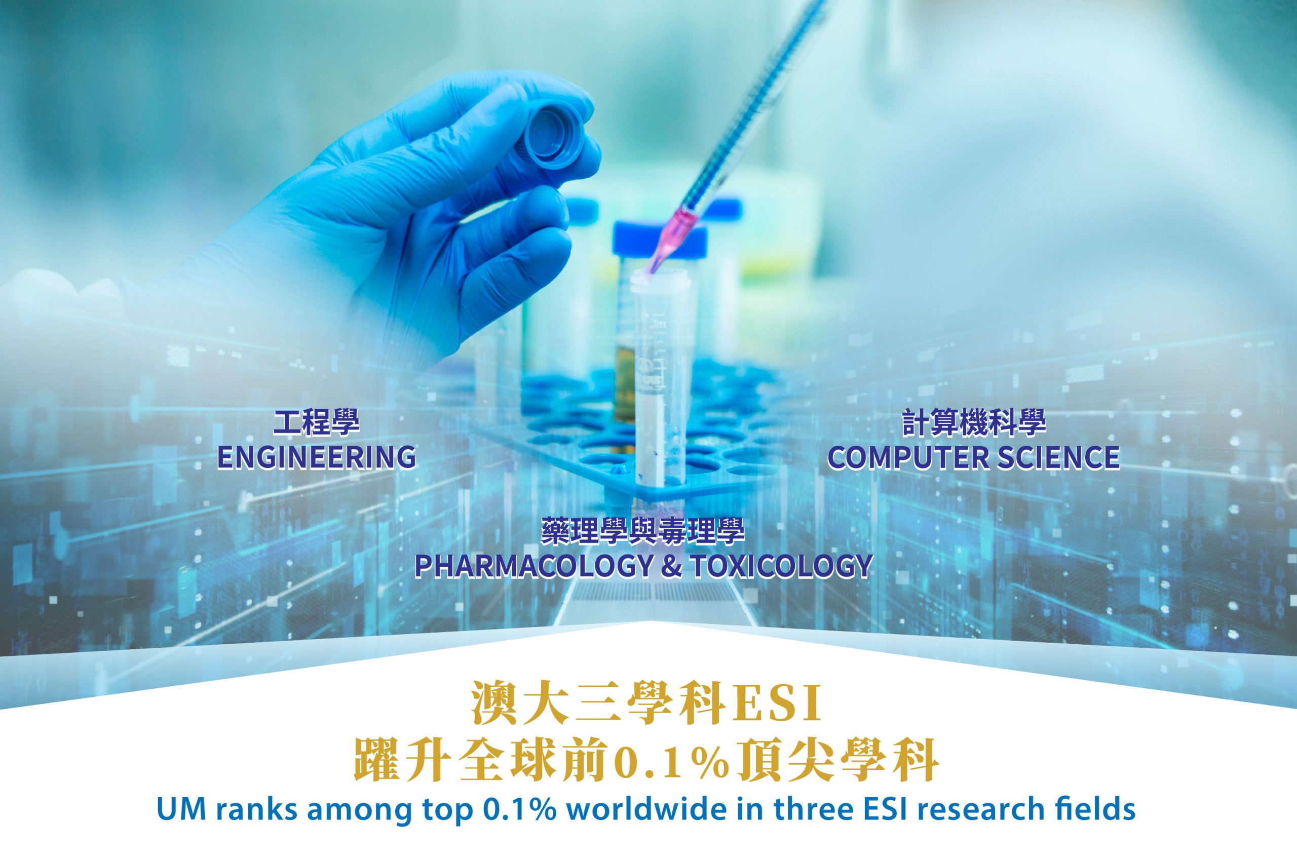 According to the latest data from Essential Science Indicators (ESI), a leading global benchmark for academic quality, the University of Macau (UM) now ranks among the top 0.1% worldwide in engineering, computer science, and pharmacology & toxicology, up from its previous position in the top 1%. This achievement highlights the world-class status of these three research fields at UM.