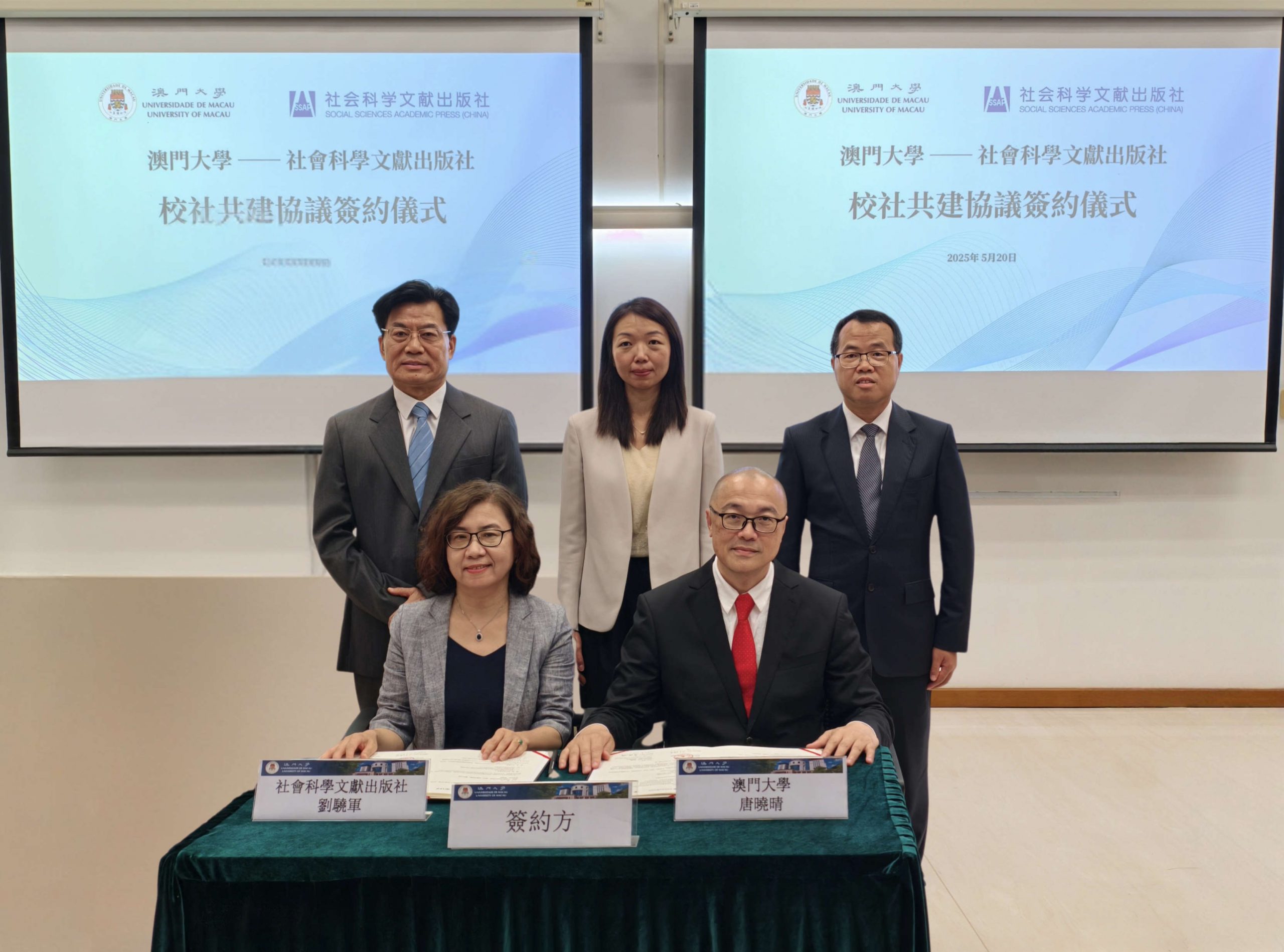 The University of Macau (UM) and the Social Sciences Academic Press (China) (SSAP) signed a cooperation agreement to deepen cooperation and exchanges in the field of law and to turn academic achievements into practical solutions. The signing ceremony was held at the Faculty of Law (FLL) of UM. An academic lecture also took place during the event.