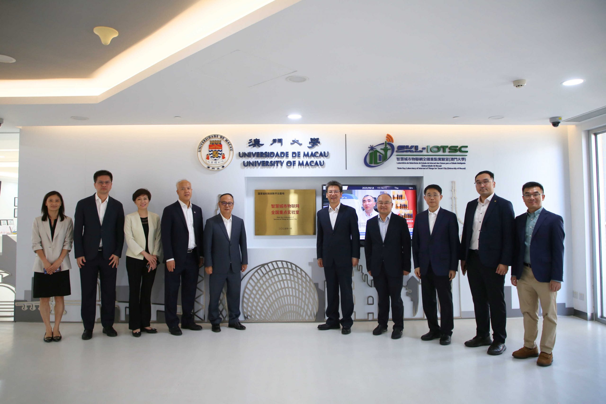 A group photo of the CAST delegation and UM representatives at the State Key Laboratory of Internet of Things for Smart City