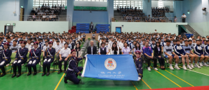 Students and teachers from Lou Hau High School participated in the activity. During the activity, members of the UM National Flag Team gave a presentation on the national flag of the People’s Republic of China, provided an overview of the team and its members’ different roles, and performed a series of movements. In addition, some students were invited on stage to learn how to hold a sword and carry a flag under the guidance of the UM National Flag Team members.