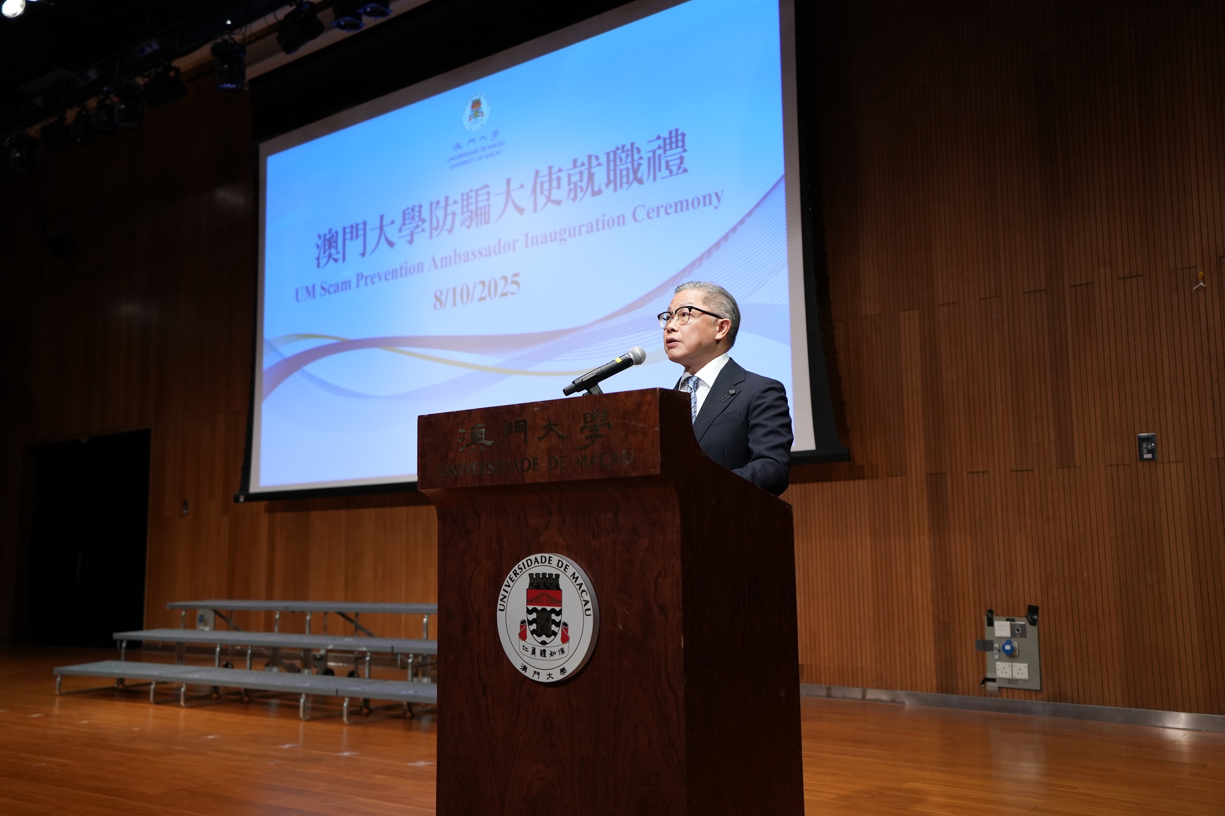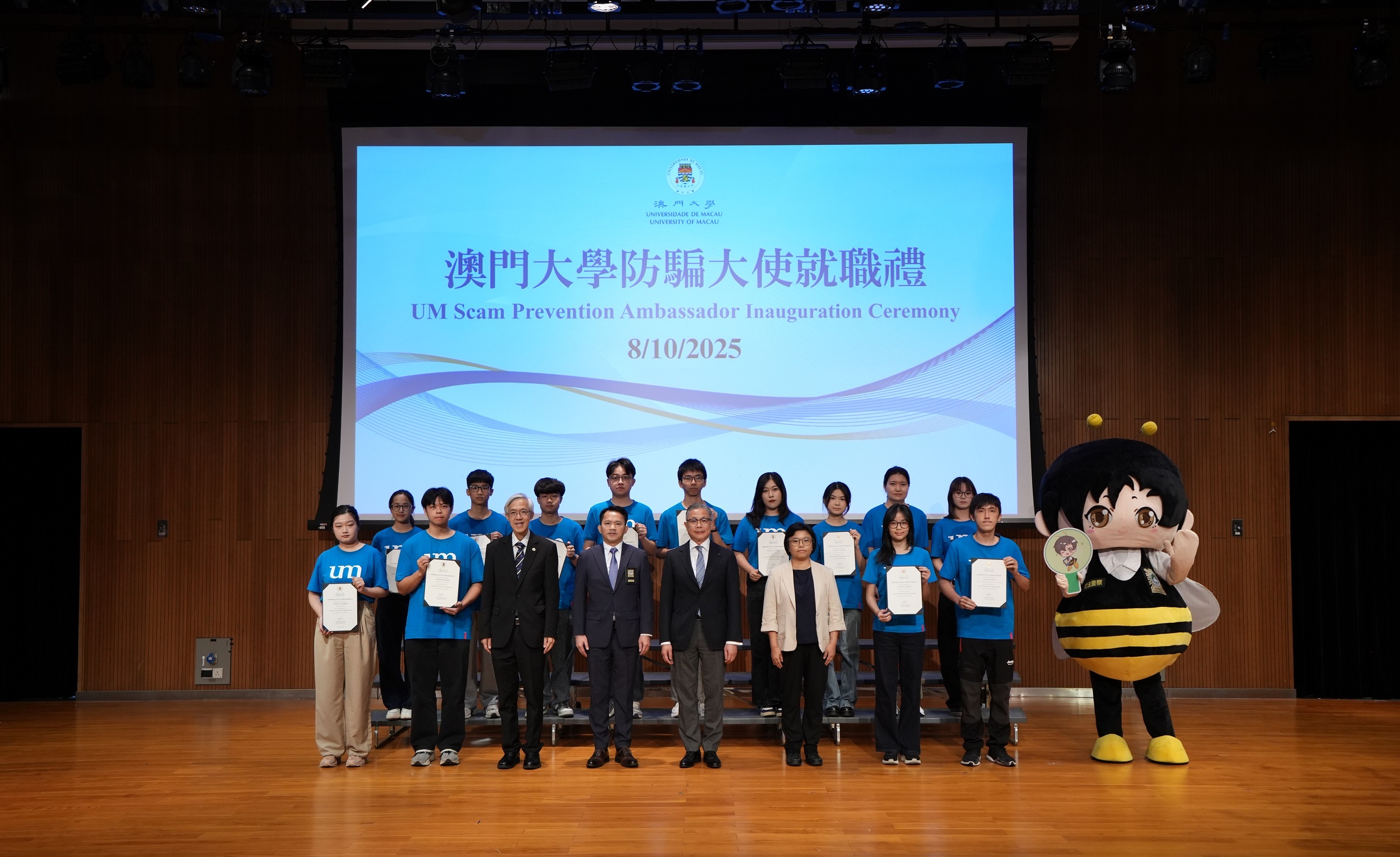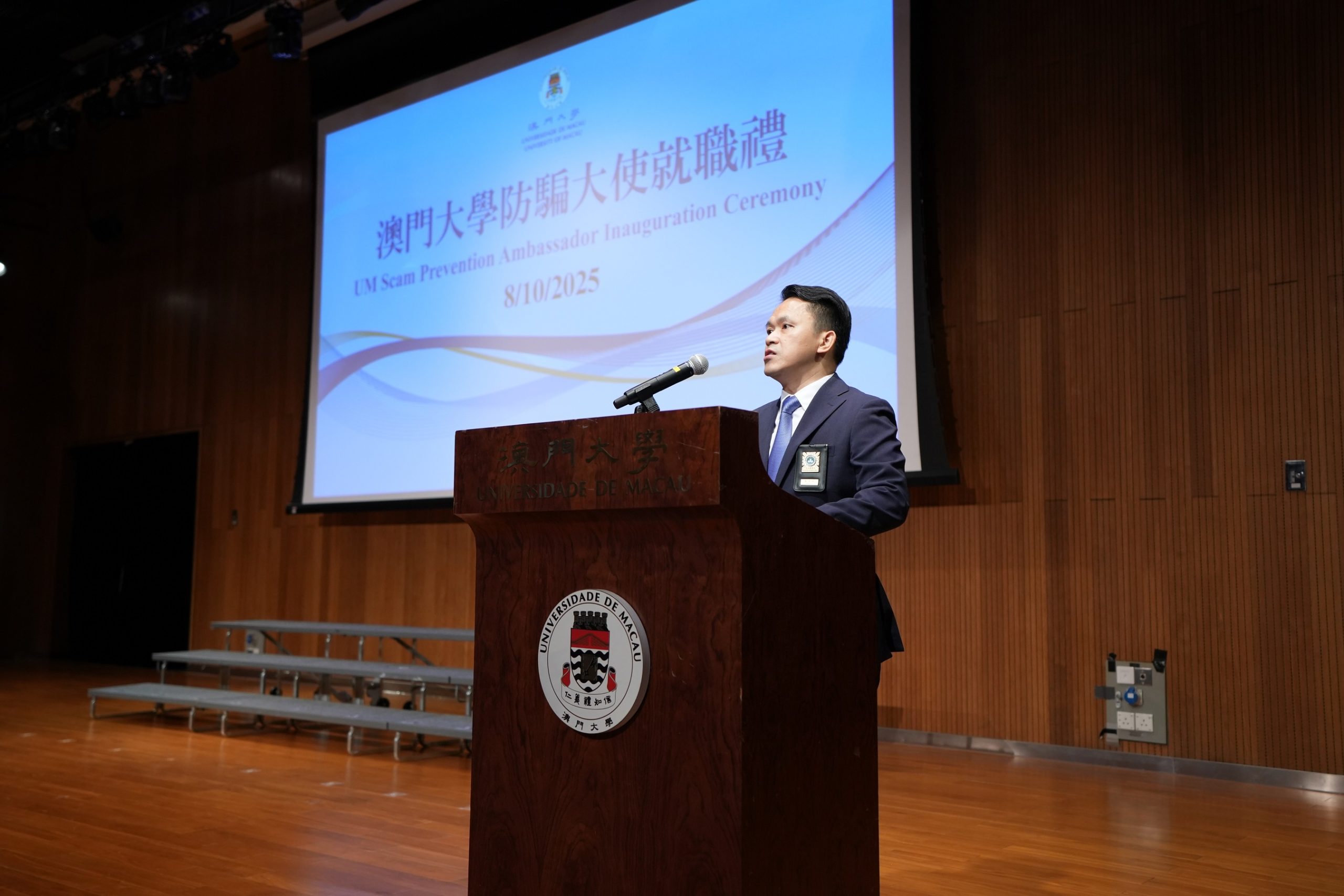 In response to the on-campus anti-fraud campaign jointly launched by the Judiciary Police and the Education and Youth Development Bureau (DSEDJ) of the Macao SAR government, the University of Macau (UM) held an inauguration ceremony for the second cohort of scam prevention ambassadors today (8 October). During the ceremony, over 430 student ambassadors were inaugurated. The university hopes that the ambassadors will promote fraud awareness on campus through positive peer influence.