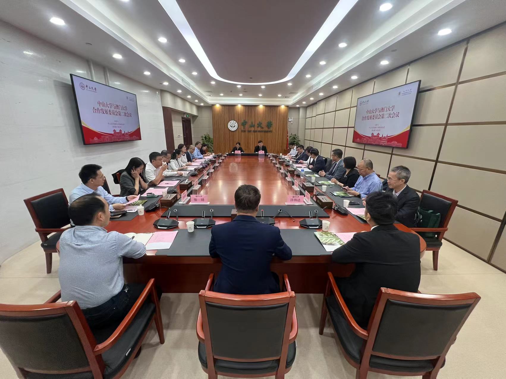 The University of Macau-Sun Yat-sen University Cooperation and Development Committee held its second meeting at Sun Yat-sen University’s (SYSU) Guangzhou South Campus on 10 November. The two parties agreed to further implement their strategic cooperation agreement to promote in-depth cooperation in areas such as research and innovation, talent development, and student exchanges, and advance the coordinated development of higher education and scientific research in the Guangdong-Hong Kong-Macao Greater Bay Area.