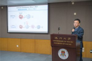 The University of Macau (UM) held the 29th UM Scholar Research Forum today (25 November), where Tang Zhenghai, assistant professor in the Faculty of Health Sciences at UM, delivered a talk titled ‘Immune Checkpoints in Cancer: Challenges and Opportunities’. The talk was well attended, with many students and faculty participating in person and online.