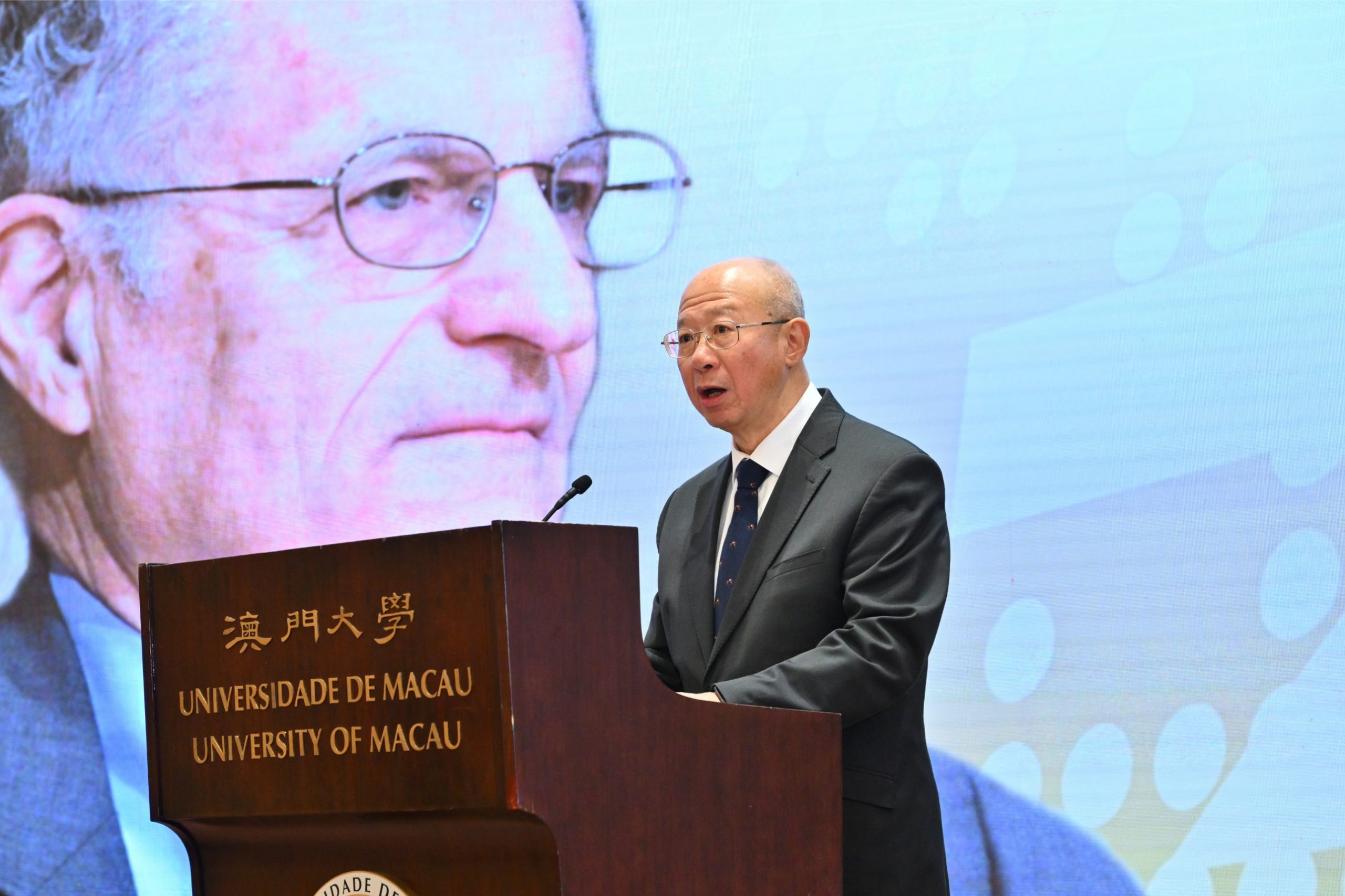 The University of Macau (UM) held a UM Doctor honoris causa Lecture today (28 November). Thomas J. Sargent, recipient of the Doctor of Business Administration honoris causa from UM and the 2011 Nobel laureate in Economic Sciences, delivered a talk titled ‘Quantifying Redistribution and Insurance in U.S. Household Data’, where he shared his latest research findings. The lecture attracted a large and diverse audience.