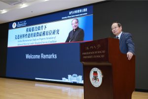 The University of Macau (UM) held a UM Doctor honoris causa Lecture today (28 November). Ze Zhang, recipient of the Doctor of Science honoris causa from UM and a leading scholar in crystal structure in materials science, delivered a talk titled ‘In-Situ Microstructure Study on Property Variation of Advanced Materials under Simulated Service Condition’, where he shared his research findings on the unique microstructures of quasicrystals and other functional nanomaterials, as well as their potential applications.