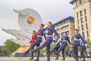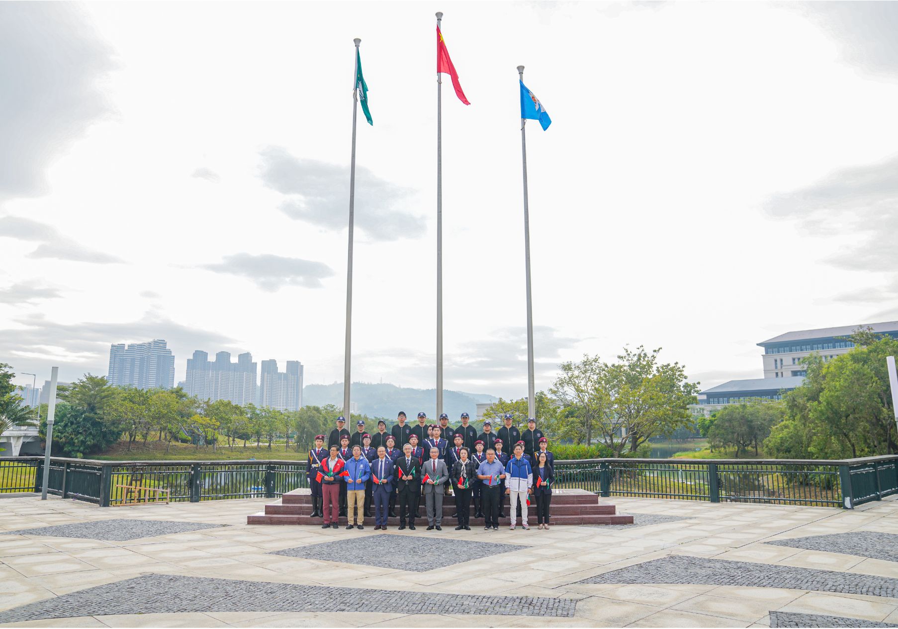 In celebration of the 26th anniversary of the establishment of the Macao Special Administrative Region (SAR), the University of Macau (UM) held a flag-raising ceremony today (20 December) at its Lotus Square to extend its best wishes to the country and the SAR.
