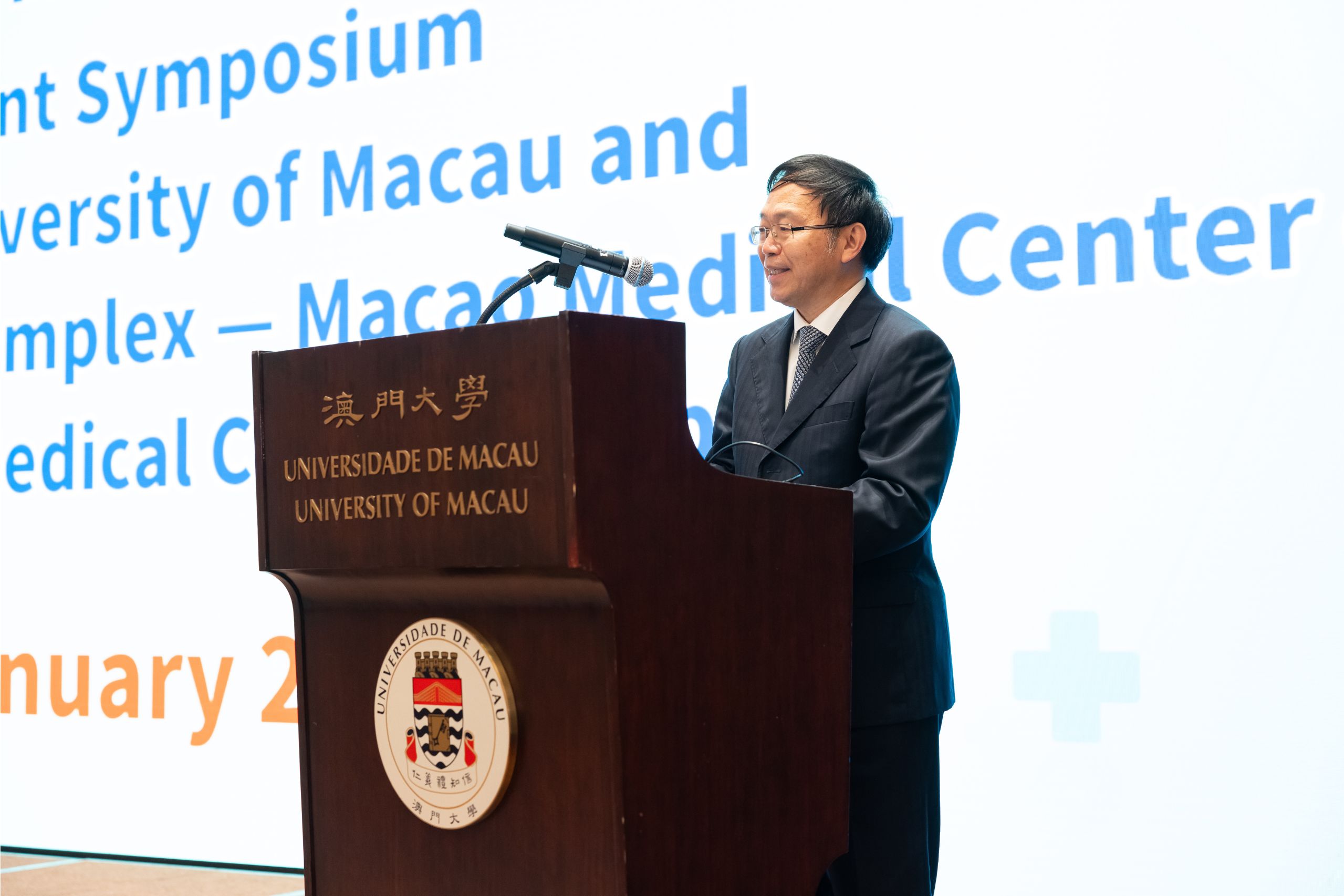The Faculty of Health Sciences (FHS) of the University of Macau (UM) and the Islands Healthcare Complex – Macao Medical Center of Peking Union Medical College Hospital (Macao Union Medical Center) co-organised the Second Joint Symposium, which attracted more than 100 experts and scholars from medical institutions in Macao. During the event, the two parties reached a consensus on several future collaborative initiatives, including promoting the sharing of research and clinical data, expanding exchange mechanisms for students and clinical staff, and strengthening systematic cooperation in precision medicine as well as the diagnosis and treatment of major diseases.