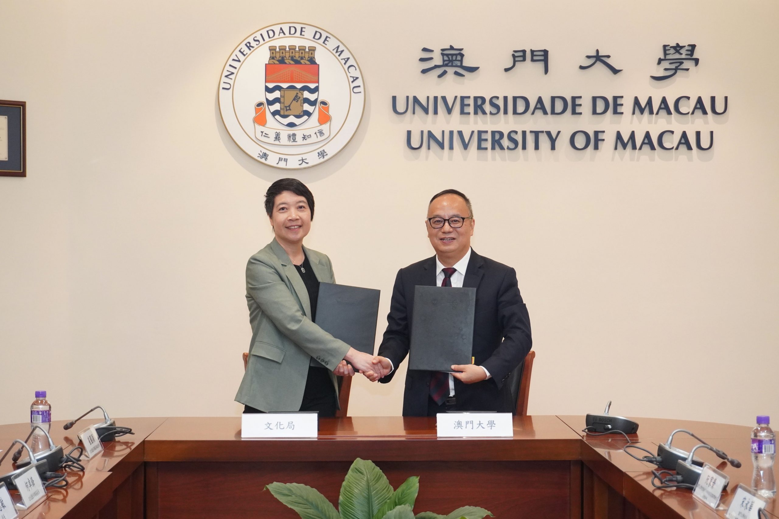 To strengthen technical exchanges and research cooperation in the field of cultural heritage preservation in Macao, the University of Macau (UM) and the Cultural Affairs Bureau of the Macao SAR Government have signed a cooperation framework agreement. According to the agreement, the two parties will leverage their respective strengths in the application of cultural heritage preservation technologies, monitoring and data analysis. They will also jointly promote the scientific application and sustainable development of cultural heritage conservation technologies. Yonghua Song, rector of UM and director of the State Key Laboratory of Internet of Things for Smart City (SKL-IOTSC), and Leong Wai Man, president of the Cultural Affairs Bureau, signed the agreement. The two parties also held a meeting to discuss the first phase of cooperation. In addition, representatives of the Cultural Affairs Bureau visited SKL-IOTSC to learn more about the operation and research capacity of the laboratory.