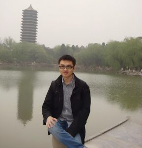 Prof Lyu Hanyue by Weiming Lake at Peking University