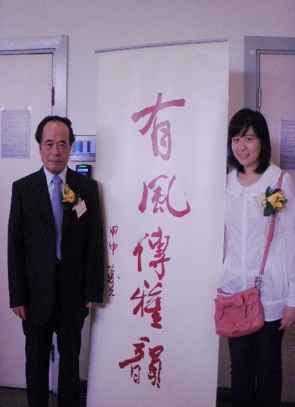 | (From left) Prof. Sze Yee Tui and the PhD student take part in the classical poetry recitation in Hong Kong |