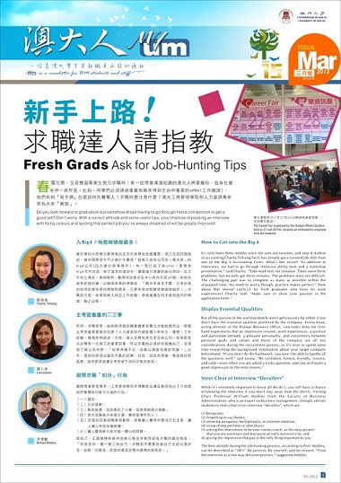 The March issue of My UM invites a student and several experts to give you some useful tips to stand out in job hunting. House Ng, a student from FST, shares with us his volunteer experience in Japan for the 311 earthquake. Have you been to The Learning Commons? It offers a cozy environment for staff and students to study and interact 24 hours a day. Don’t miss out on the Photo Sharing section where contributors share the splendid views of sunset at UM! The phase-2 construction of the new campus has begun, check out the e-version of “My UM” at http://www.umac.mo/myum/201203/myum_issue015.pdf for the updates.