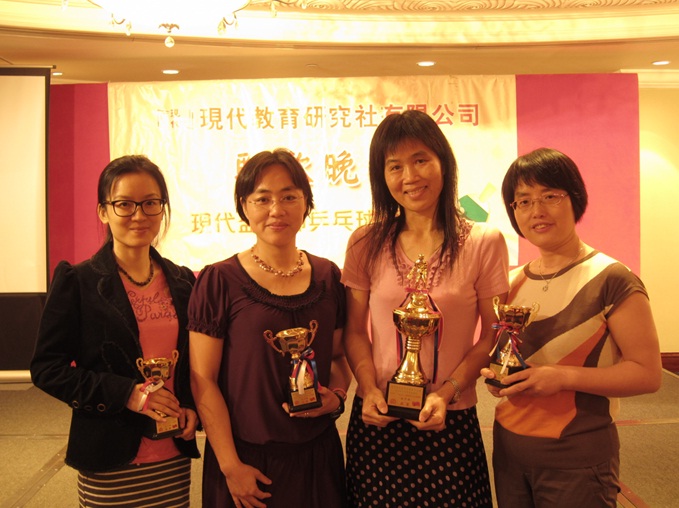 At the “Modern Cup” Table Tennis Competition 2012, University of Macau (UM) staff from the Faculty of Education (Dr. Emily Shieh Jin-Hy and Dr. Jiang Chunlian) and the Faculty of Social Sciences and Humanities (Dr. Chen Yu and Dr. Angela Chang) won the first runner-up prize in the women’s group category. Mr. Lei Man Kei from the Information and Communication Technology Office won the first runner-up prize in the men’s individual category.