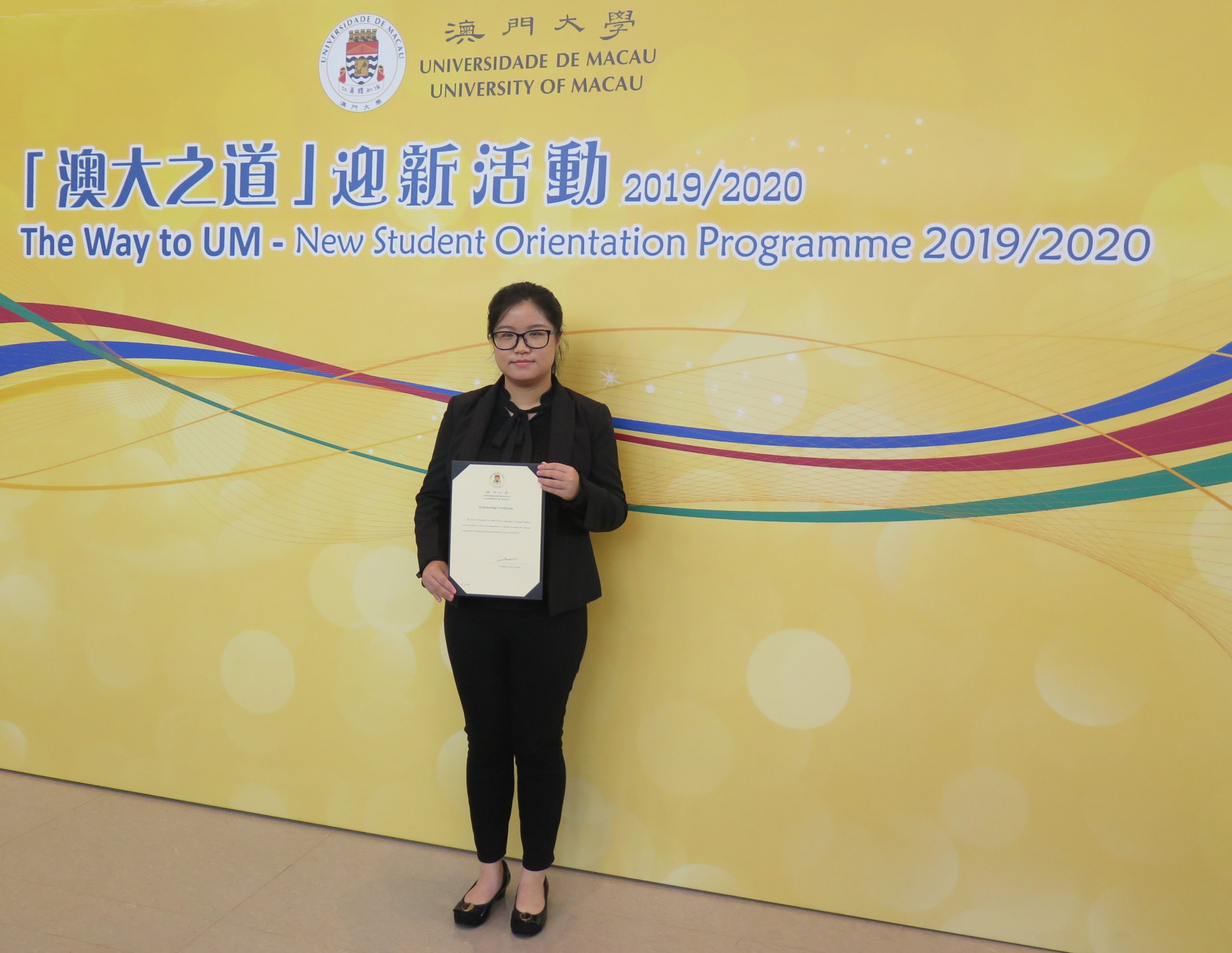 Sio I I, a fourth-year student of English studies, received the Macau Foundation Scholarship. According to Sio, UM provides a very good learning environment for students, and she especially likes the residential college system, through which she can make friends with and learn from people from different places. In addition, the RCs organise activities on a regular basis, which help to enrich students’ lives on campus and create more opportunities for teacher-student interaction.