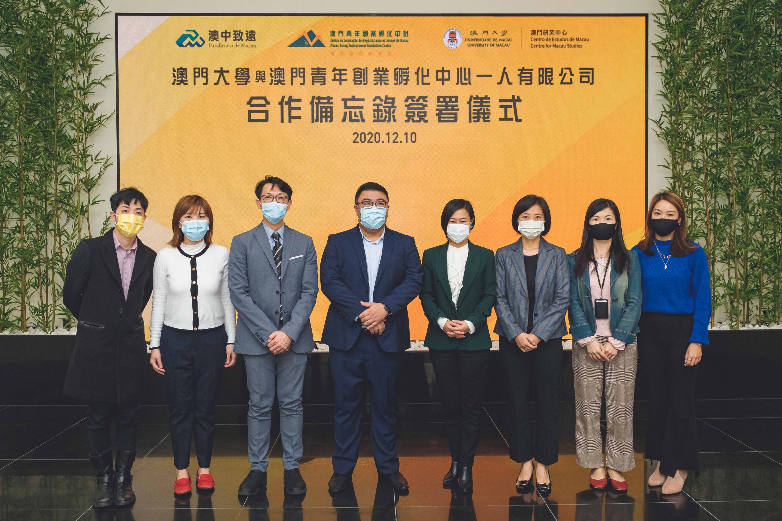 The University of Macau (UM) and the Macao Young Entrepreneur Incubation Centre today (10 December) signed a Memorandum of Understanding (MoU) on strengthening communication and collaboration in research and academic affairs. Both parties will work together in the exchange of researchers as well as scientific research and seminars. They will also create academic databases to facilitate information sharing.