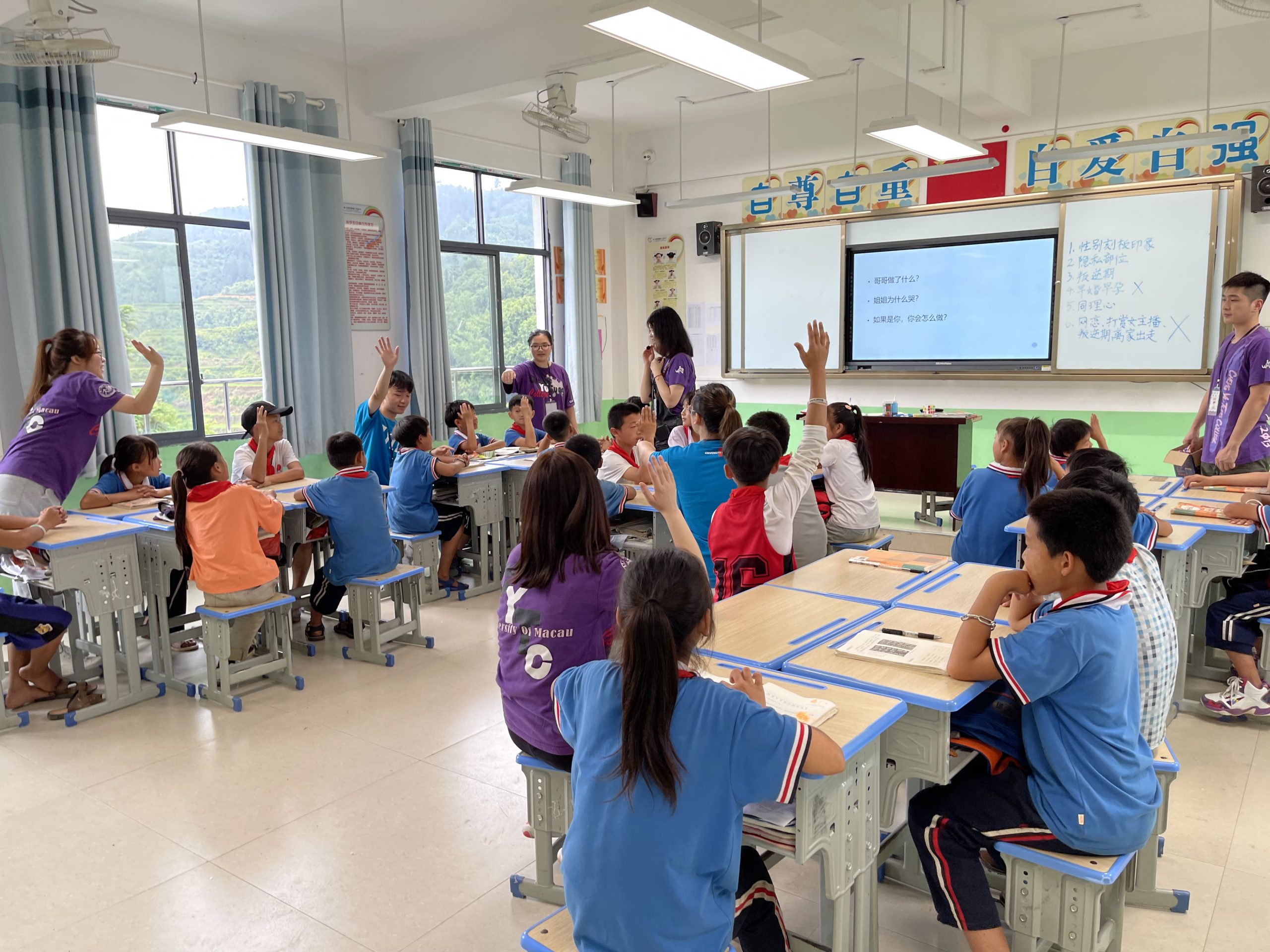Dadai Village is located in a mountainous area and the majority of the villagers are Miao people, who have their own language and culture and still lead a traditional rural way of life. Members of CYTC visited the primary school for the first time in July 2018 and conducted their first service learning programme there in December in the same year. During the stay, they had conversations with local officials and the school principal to learn about the needs of the students. In 2019, with the sponsorship of the Macao SAR government, the new campus of Dadai Primary School became operational. It was also the first time that the CYTC team visited the new campus as part of their service learning trip.