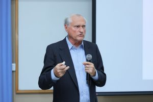As part of the University Lecture Series, the University of Macau (UM) held a talk titled ‘Geometry Is a Singular Subject’ today (7 November). Richard Schoen, a world-leading mathematician and Excellence in Teaching Chair at the University of California at Irvine, was the speaker. Speaking at the event, Michael Hui, vice rector of UM, said that Prof Schoen is an expert in differential geometry and the mathematical theory of general relativity, adding that singularity is of great significance to research on differential geometry. During the talk, Prof Schoen discussed how singularity, a concept in mathematics, is applied in a significant amount of current research in differential geometry, encompassing topics ranging from corners which arise in optimal networks to black holes in general relativity. In addition, Prof Schoen actively engaged with the participants during the Q&A and discussion session.