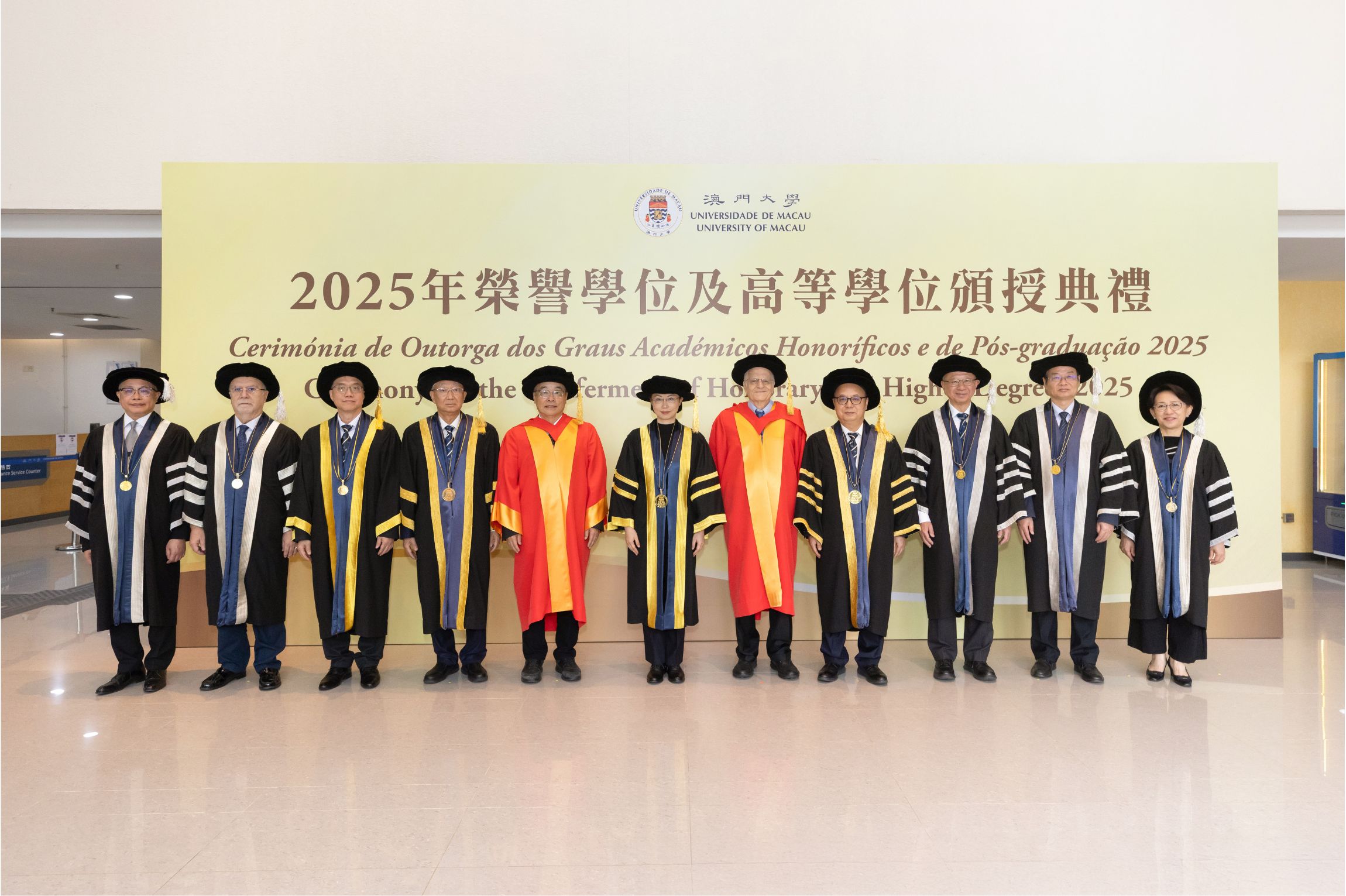 The University of Macau (UM) held the Ceremony for the Conferment of Honorary and Higher Degrees 2025 today (30 November). During the ceremony, the university conferred honorary doctorates on Ze Zhang, a leading scholar in crystal structure in materials science, and Thomas J. Sargent, Nobel laureate in Economic Sciences, in recognition of their outstanding achievements and significant contributions to society.
