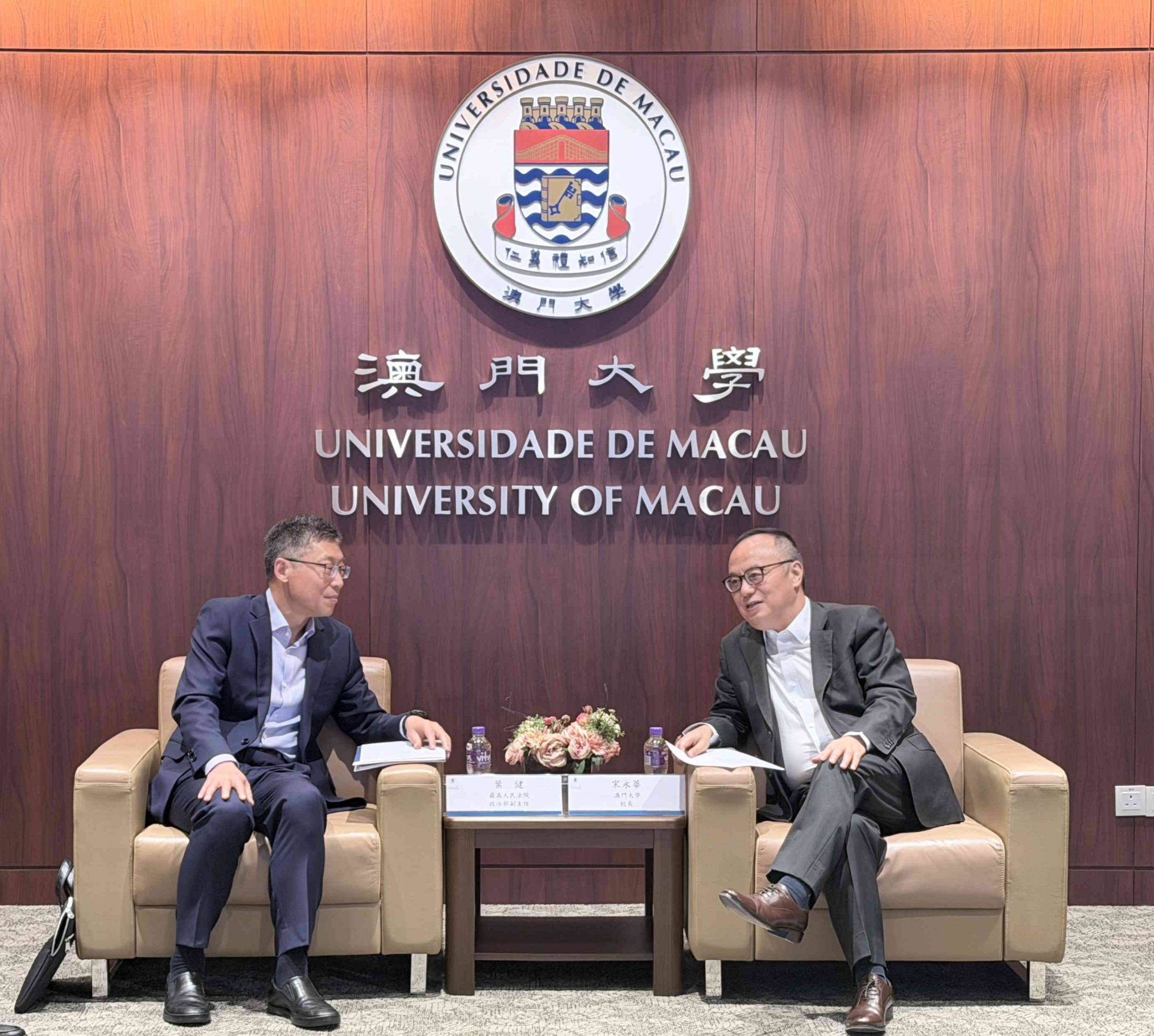 A delegation led by Ye Jian, deputy director of the Political Department of the Supreme People’s Court, visited the University of Macau (UM) and was warmly received by Yonghua Song, rector of UM. The two parties held in-depth discussions on cultivating legal professionals and enhancing cooperation in judicial practice.