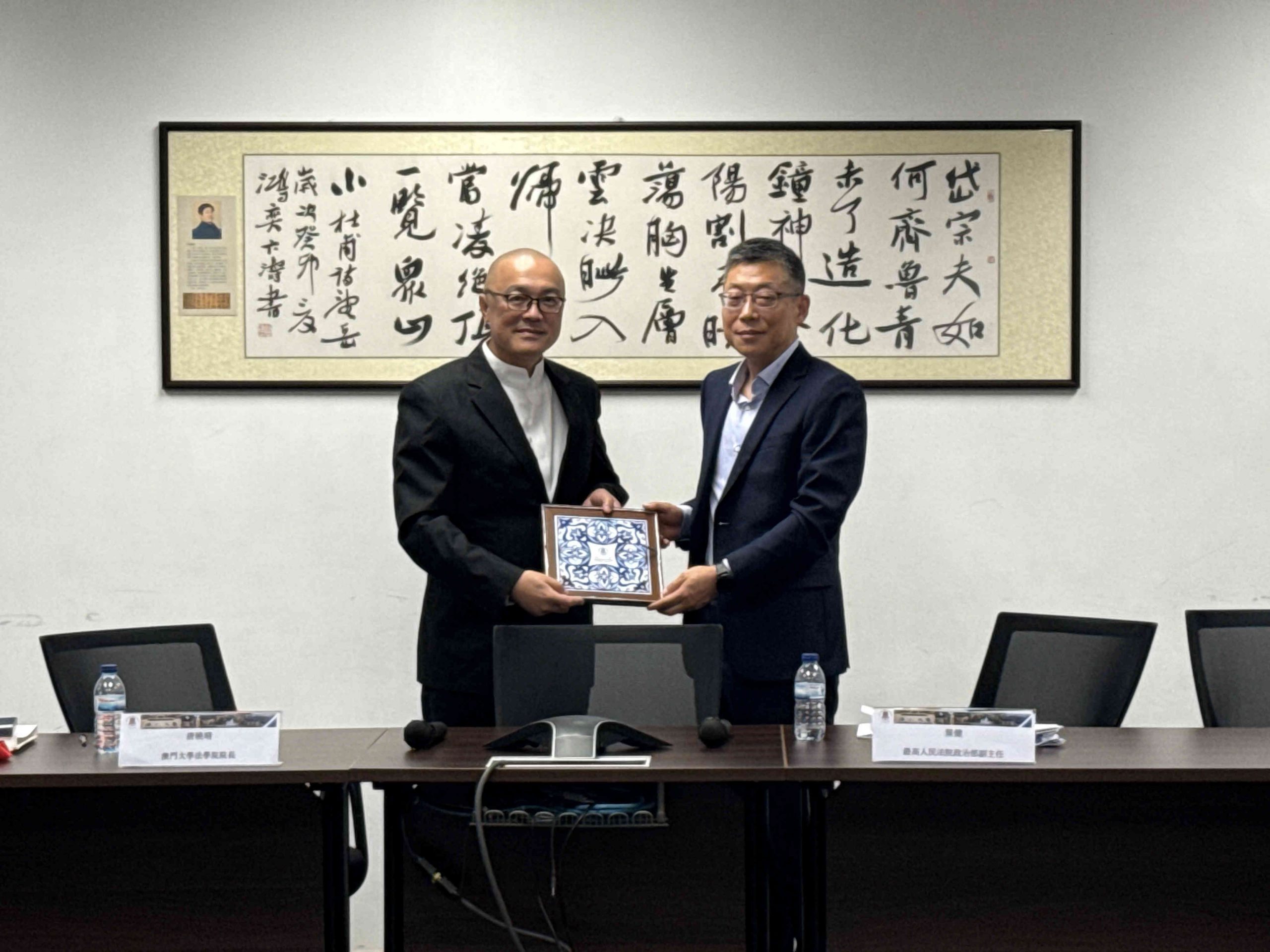 During the visit, the delegation also met with members of FLL, including Dean Tong Io Cheng, to exchange views on various topics. Both sides expressed hope to further deepen communication and cooperation, and to jointly cultivate outstanding legal professionals for Macao, the Greater Bay Area, and the country.