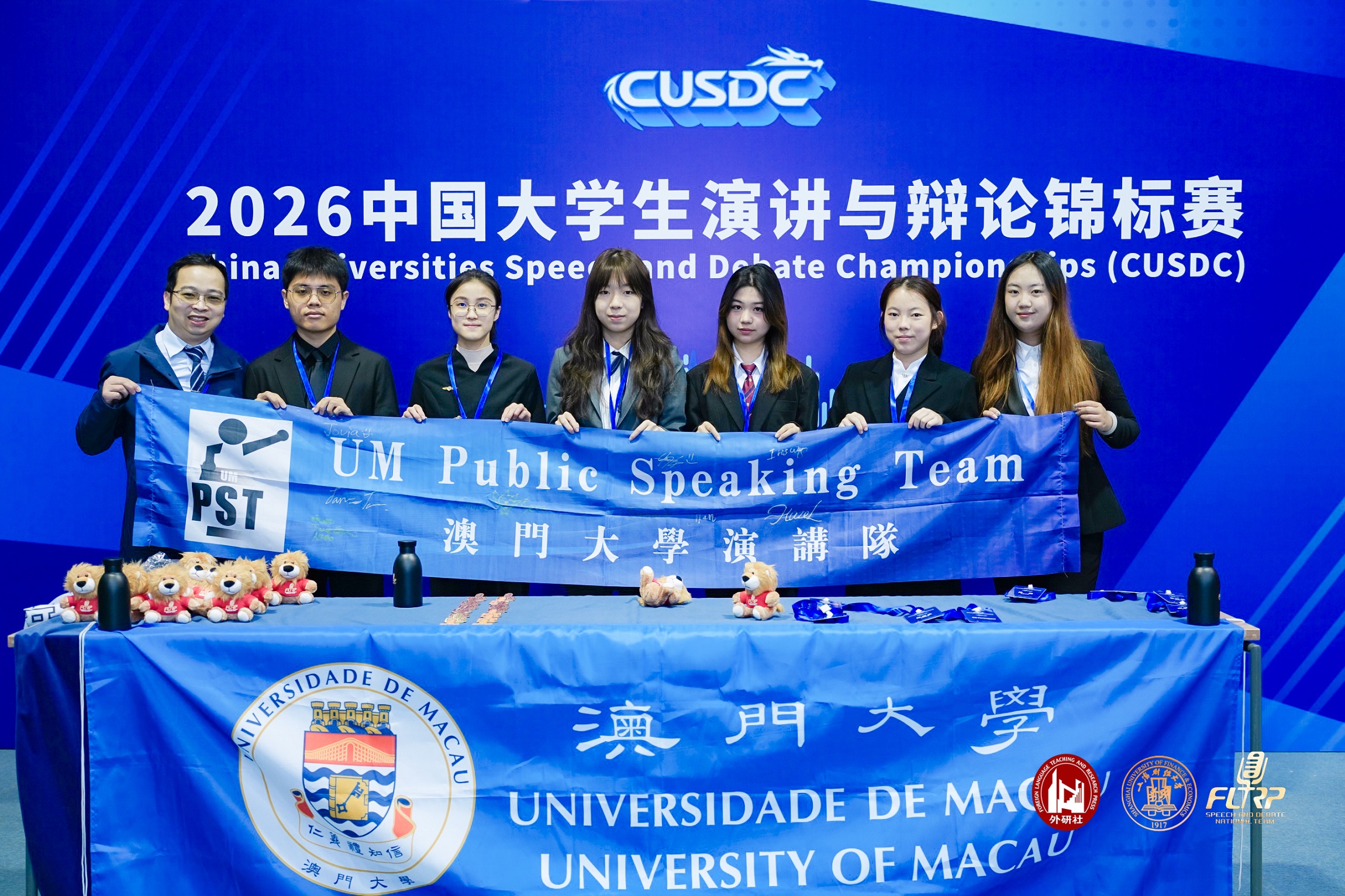 Members of the Public Speaking Team and the English Debating Team of the University of Macau (UM) achieved outstanding results at the 2026 China Universities Speech and Debate Championships, held in Shanghai. The UM teams won one runner-up title, three second runner-up titles, two first prizes, one second prize, and one third prize, making UM the university with the highest number of awards at the competition. In recognition of their exceptional performances, three UM students—Chang Wang Kit, Lo Oi Lam, and Tao Zhaoyu—were selected to join the national university speech team to represent China in international English speech competitions.