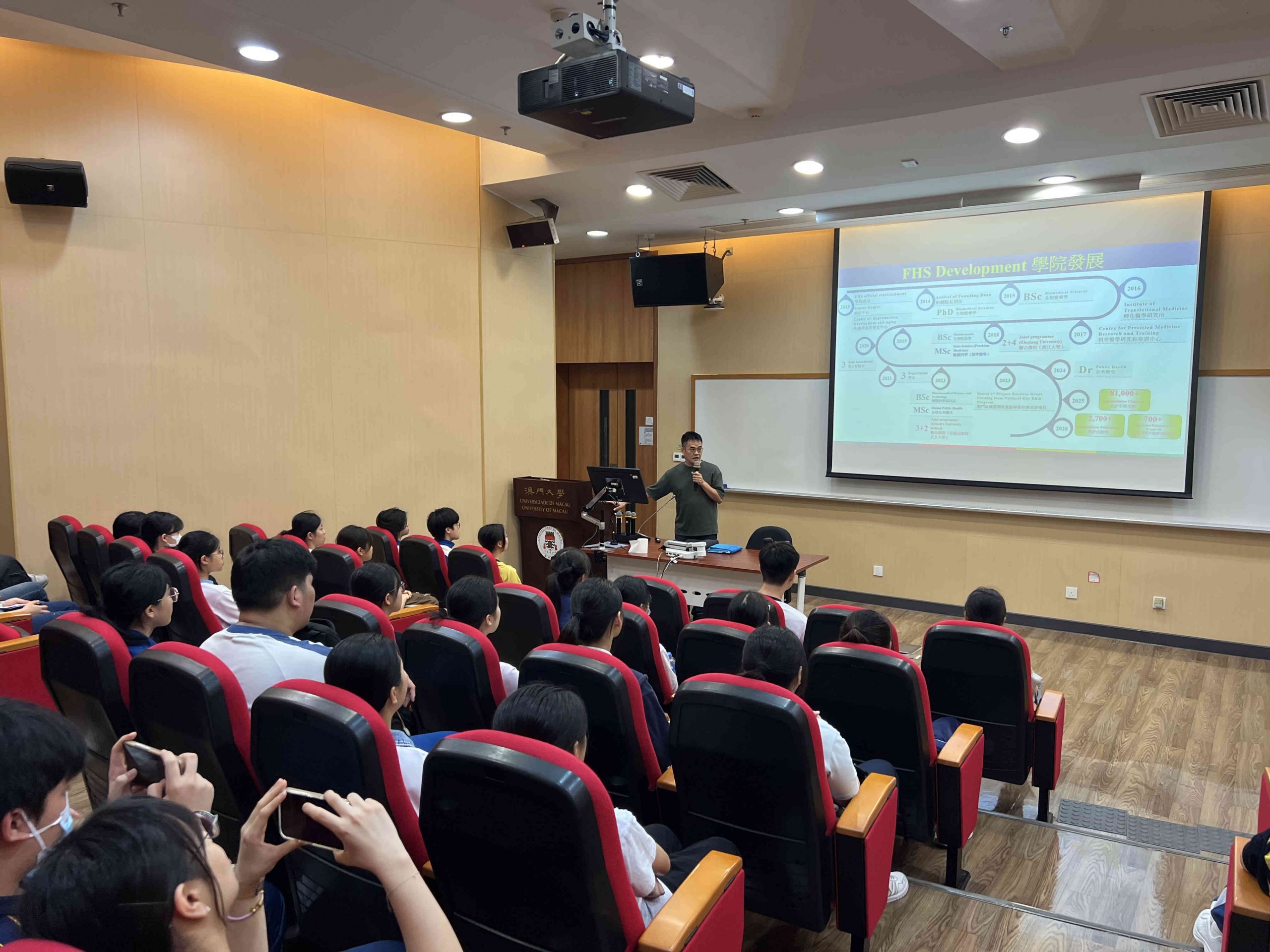 Participants included students from the following schools: Macau Anglican College, Keang Peng School, Sacred Heart Canossian College, Sacred Heart Canossian College (English Section), Escola Estrela do Mar, Colégio de Santa Rosa de Lima Secção Chinesa, Escola Xin Hua, The Affiliated School of the University of Macau, Saint John de Brito School, Hou Kong Middle School, and Saint Paul School Macau. On the day of the event, FHS Assistant Professor Wakam Chang provided an overview of the faculty’s teaching and research directions and achievements. He noted that biomedical sciences are closely linked to human wellbeing, and that scientific research plays a pivotal role in advancing medical innovation and societal development. He added that FHS is committed to nurturing talent with global perspectives and strong research capabilities, and encourages students to take the initiative in their learning. The faculty also hopes that the outreach activity will give secondary school students an early insight into the world of research, sparking their curiosity and interest in scientific inquiry.