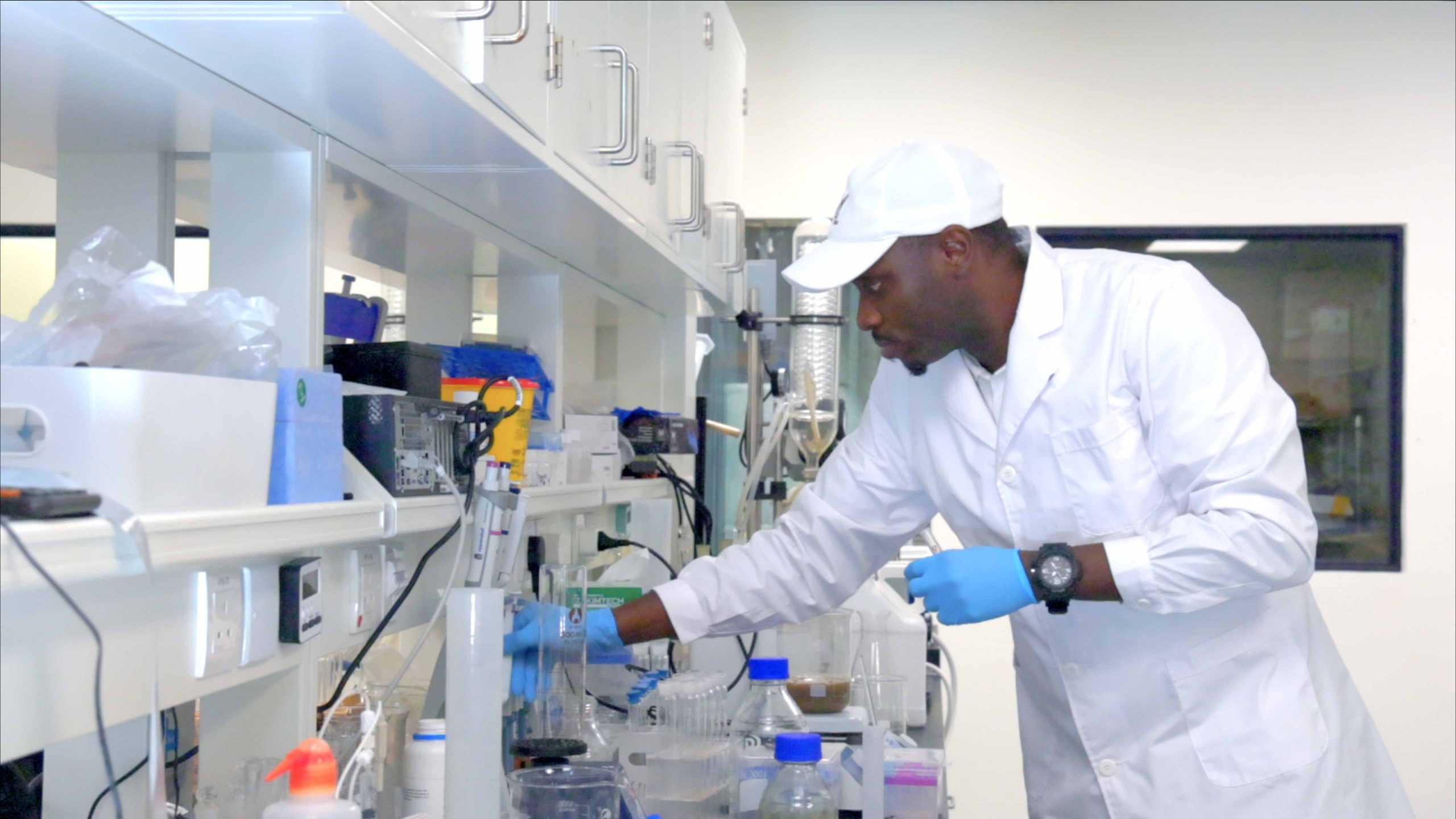 Dr Fadairo conducts experiments in the laboratory at the UM Centre for Regional Oceans