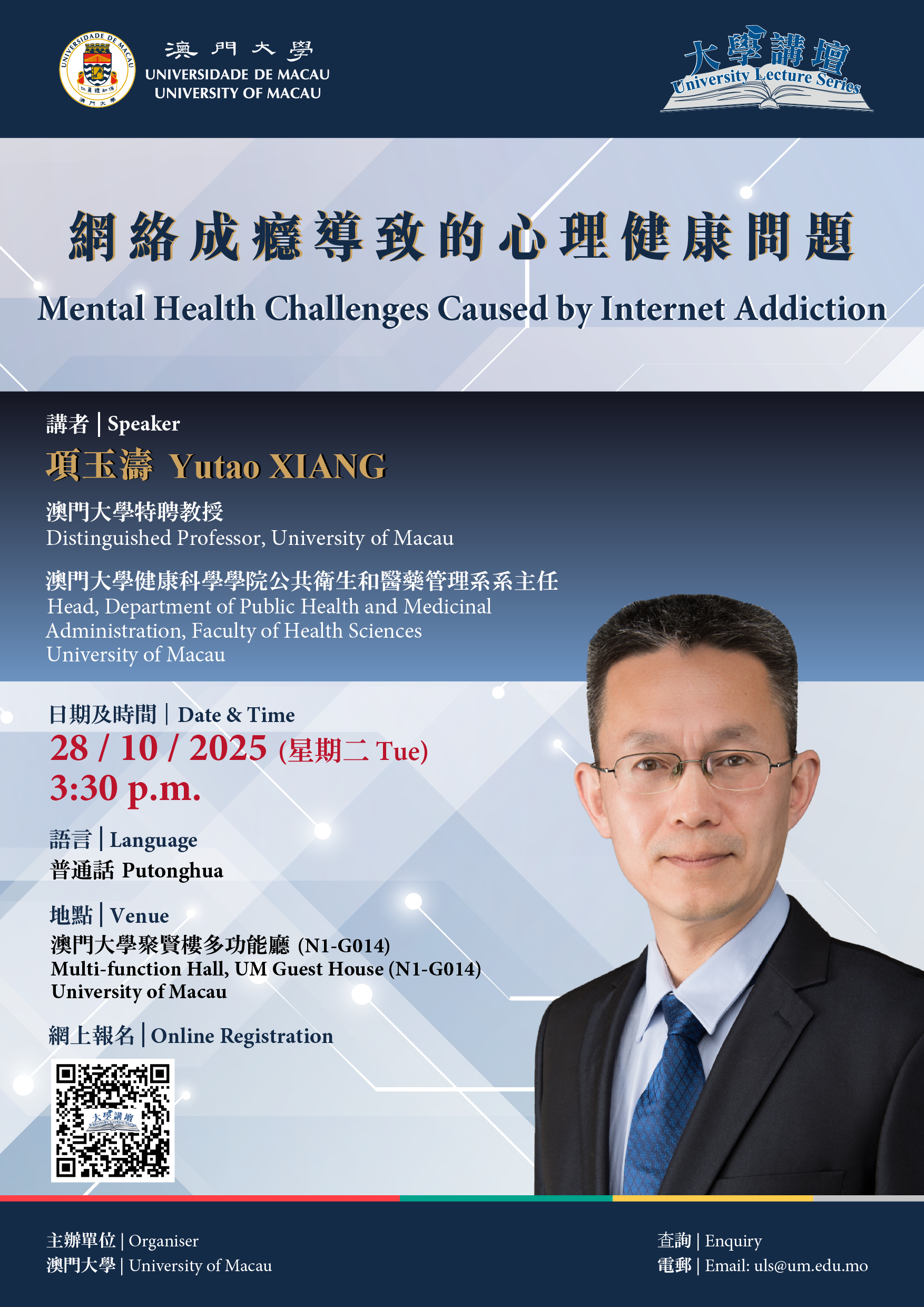 10月30日 | 11:00 - 12:00 社會科學學院心理學講座:”Advancements in the Assessment of Internet Use Disorders” 人文社科樓(E21B)G016室