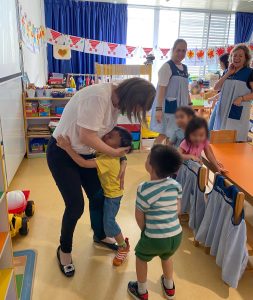 午休時間,Bina校長像往常一樣,到不同班房給教師們擁抱,關心他們課堂的情況,而當小朋友們看到校長,心情馬上雀躍起來,有的甚至撲到她的身前,伸手索抱。走廊的壁布板上,貼滿了小朋友的自畫像,他們有的把自己畫成一棵植物、一個水果或一種動物,而課室大門上,亦裝飾著師生一起創作的花草樹木和小昆蟲。她說:「在幼童的階段,他們最需要的是顏色筆,用色彩表達自己眼裡的世界,發揮無窮的想像力。」
