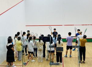 在澳大,學生可按自己的運動喜好,參與大學不同的運動屬會,如射箭學會、合球會、攀登會等, 與志同道合的同學一齊訓練。其中,壁球會集結兩百多學生會員,每週有固定的訓練時間,還設有面向初學者的壁球體驗班。體育教學及運動碩士生盧民浩是壁球會前會長,曾舉辦很多普及壁球的活動。他說:「獨樂樂不如眾樂樂,我們希望讓同學感受打壁球的樂趣,也樂意陪他們練習,提升他們的球技。」