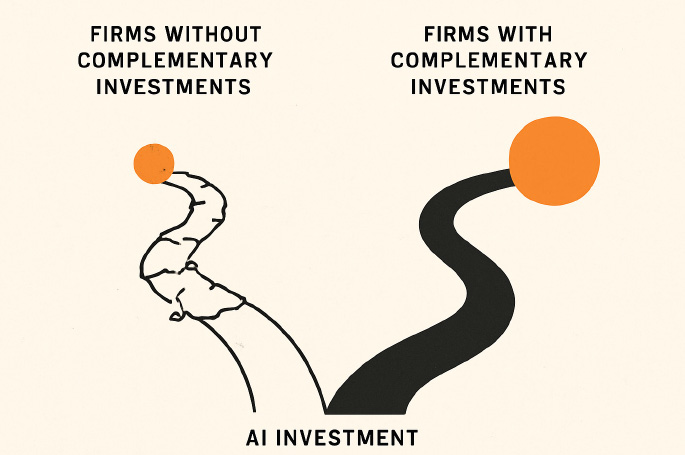 不過,我們也發現一個有趣的現象——一些經營狀況欠佳的企業,雖然理論上可以透過AI大幅改善其生產力,但實際成效卻往往不如表現較好的同行。這一差距主要源於缺乏互補性投資,例如未同步調整組織架構、培訓員工或升級基礎設施。這提醒我們,投資AI技術不是「一鍵式解決方案」。要讓它真正發揮價值,除了技術本身,企業還必須調整整體戰略,特別是對那些正處於困境的企業而言,光靠購買軟件或聘請幾名工程師是不足以應對的。