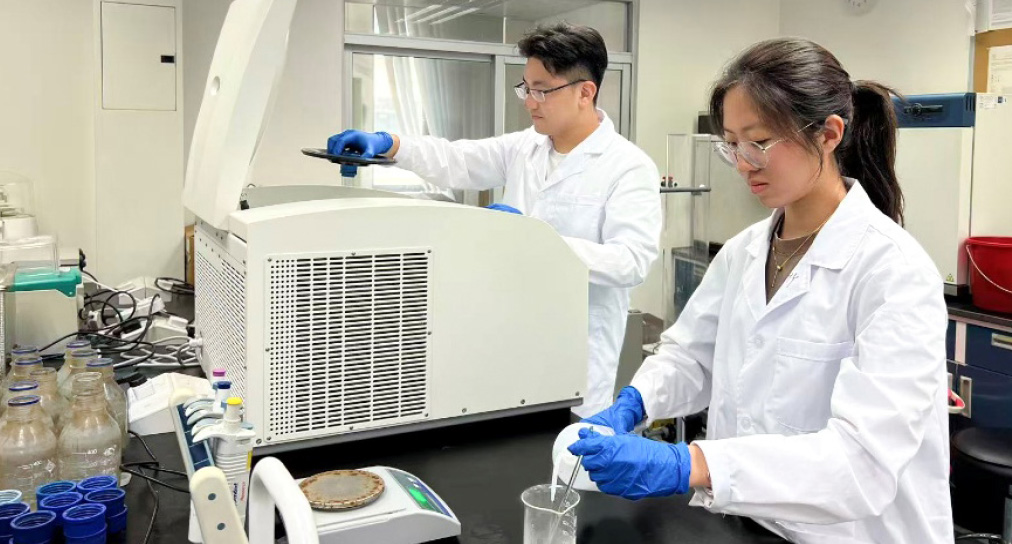 在污泥處理領域,團隊開發出「市政污泥中的高附加值資源回收系統」,通過發展多種創新技術從市政污泥中提取硫酸多糖(可用於抗腫瘤、抗凝血)和工業級海藻酸鈉,不僅使污泥脫水性能提升80%,更實現「變廢為寶」。考慮到公眾對污泥提取物醫用的接受度,團隊轉向「取之於水、用之於水」路徑——從污泥中提取硫酸多糖製成含量為0.5%的魚飼料添加劑。實驗顯示,食用該飼料三至四周的大黃魚、黑鯛及黃姑魚在細菌和病毒襲擾下的存活率顯著提升,為漁業可持續發展與海洋生態保護提供新可能。