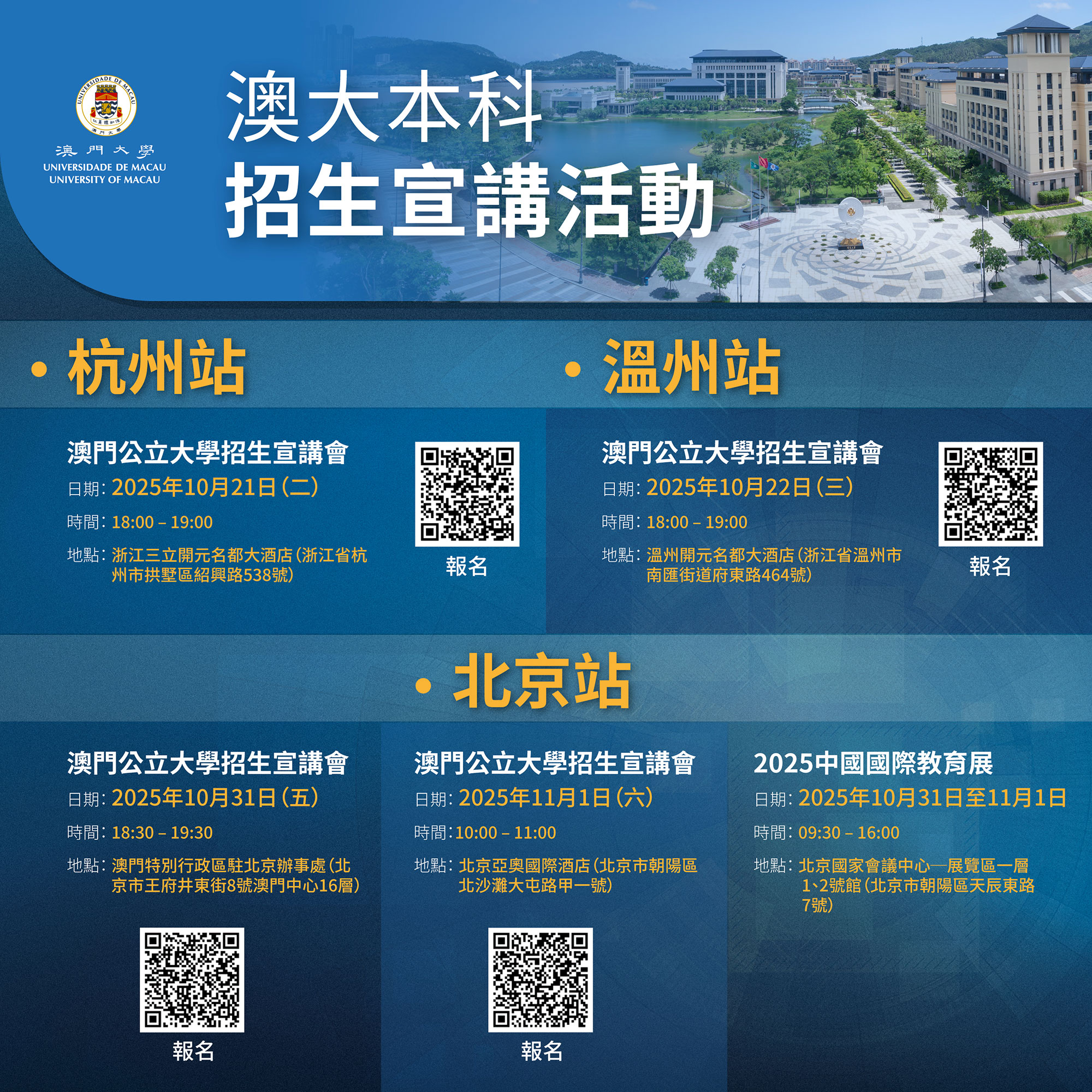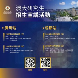 活動詳情:https://grs.um.edu.mo/index.php/admission-activities/?lang=zh-hant